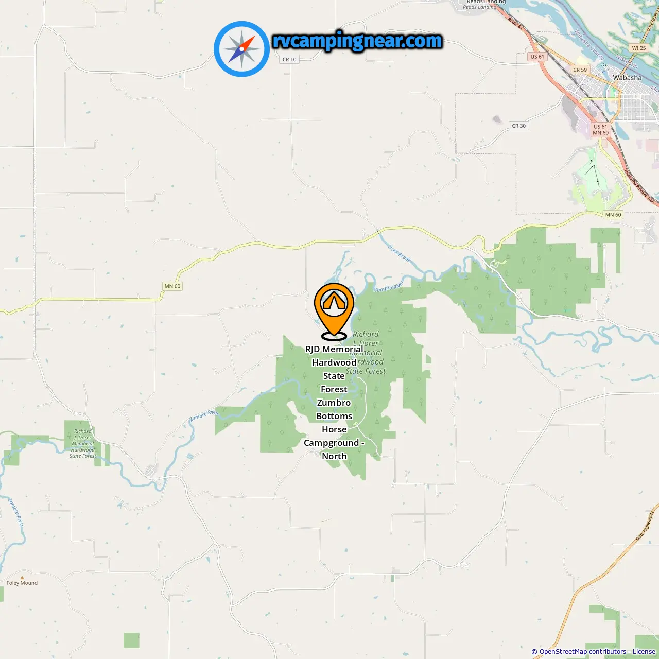 Ort von RJD Memorial Hardwood State Forest Zumbro Bottoms Horse Campground - North