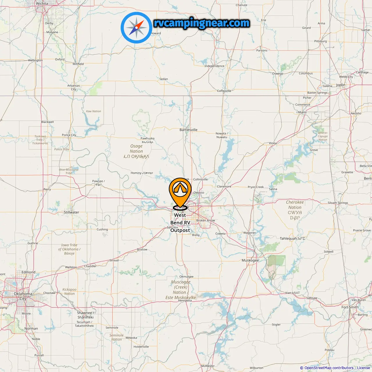 Finde Campingplätze in diesen Städten in der Nähe von Tulsa
