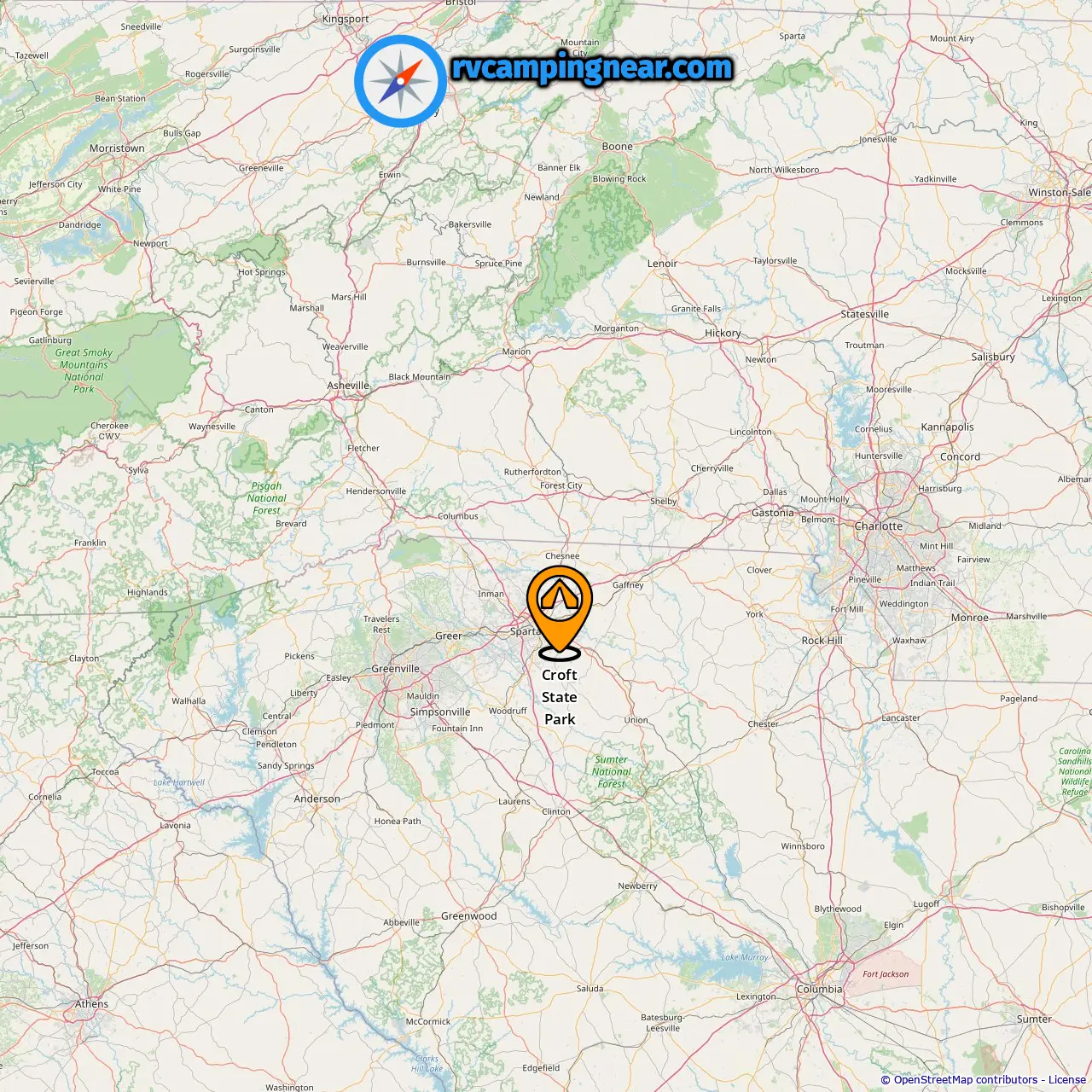 Finde Campingplätze in diesen Städten in der Nähe von Spartanburg