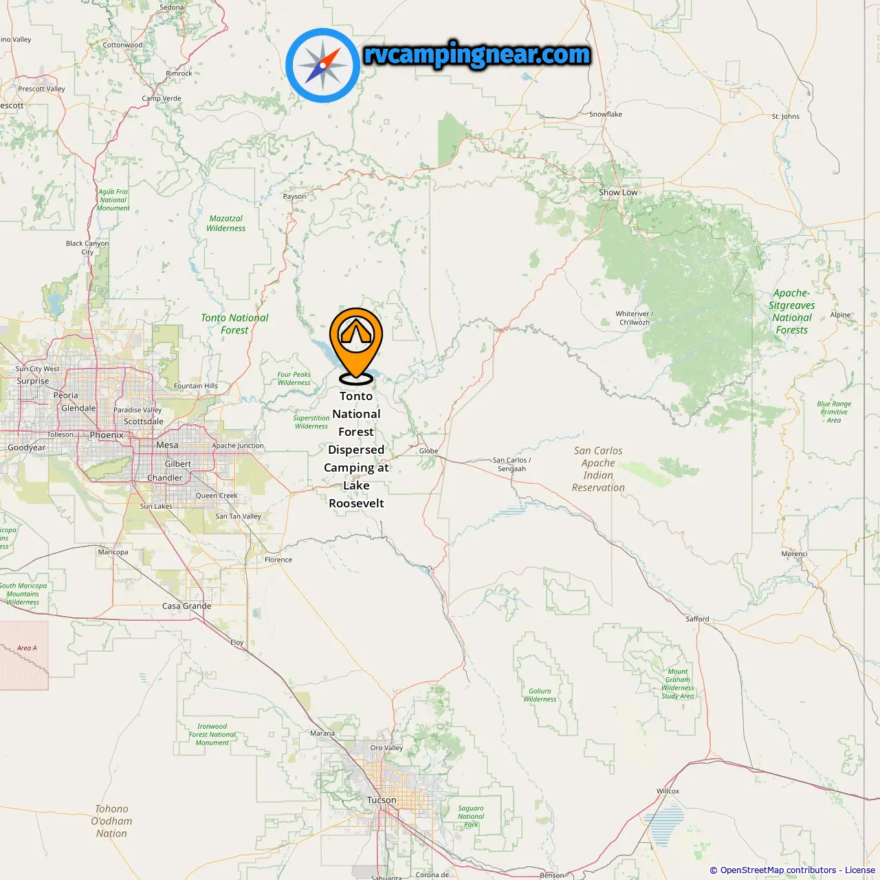 Location of Tonto National Forest Dispersed Camping at Lake Roosevelt
