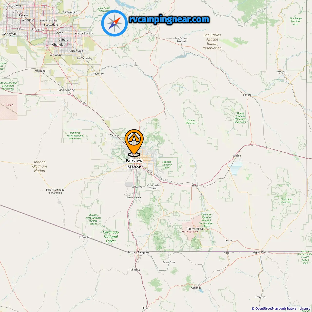 Find campsites in these cities near Tucson
