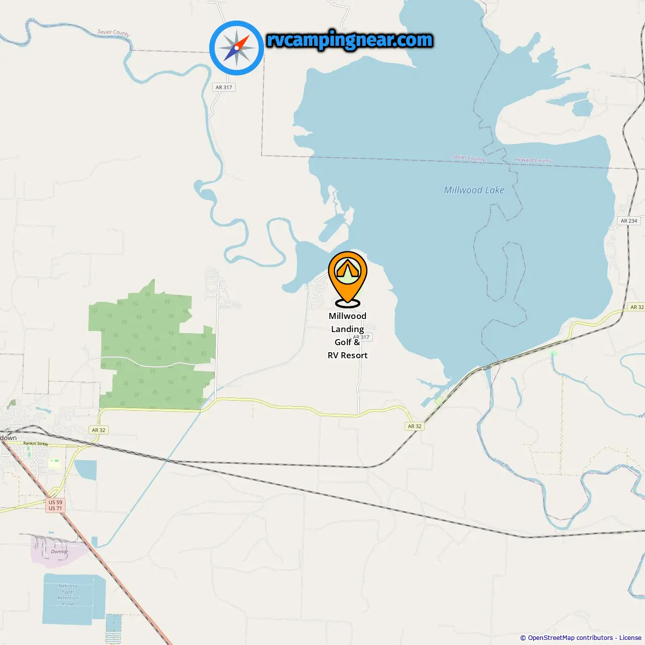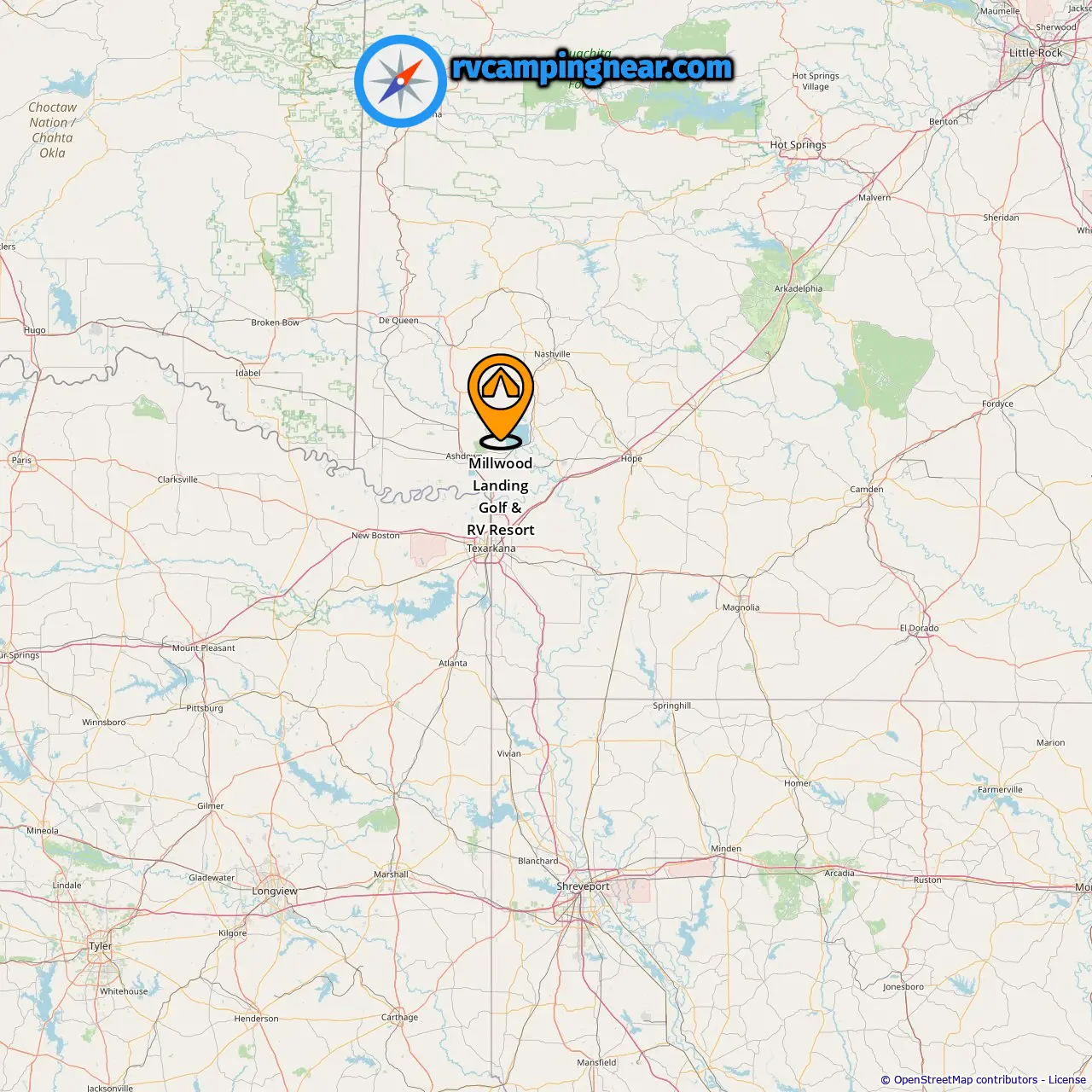 Location of Millwood Landing Golf & RV Resort