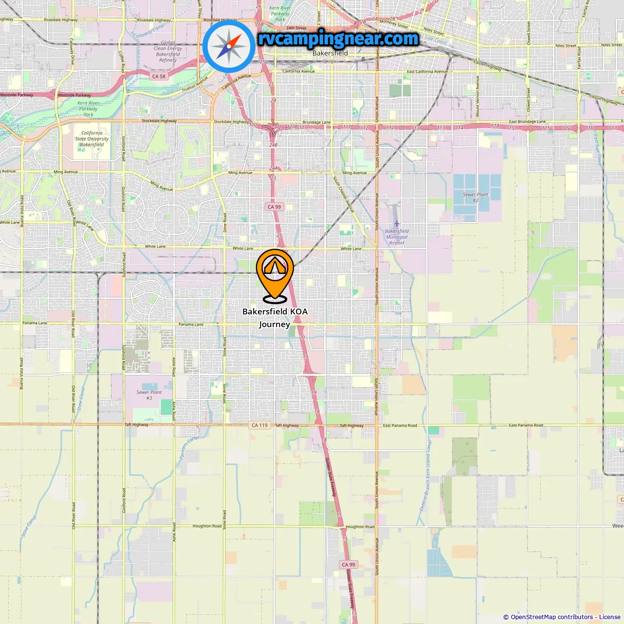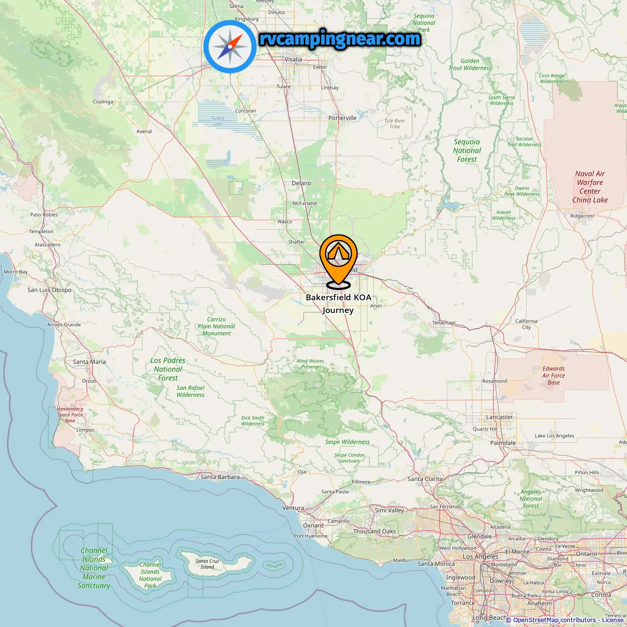 Location of Bakersfield KOA Journey