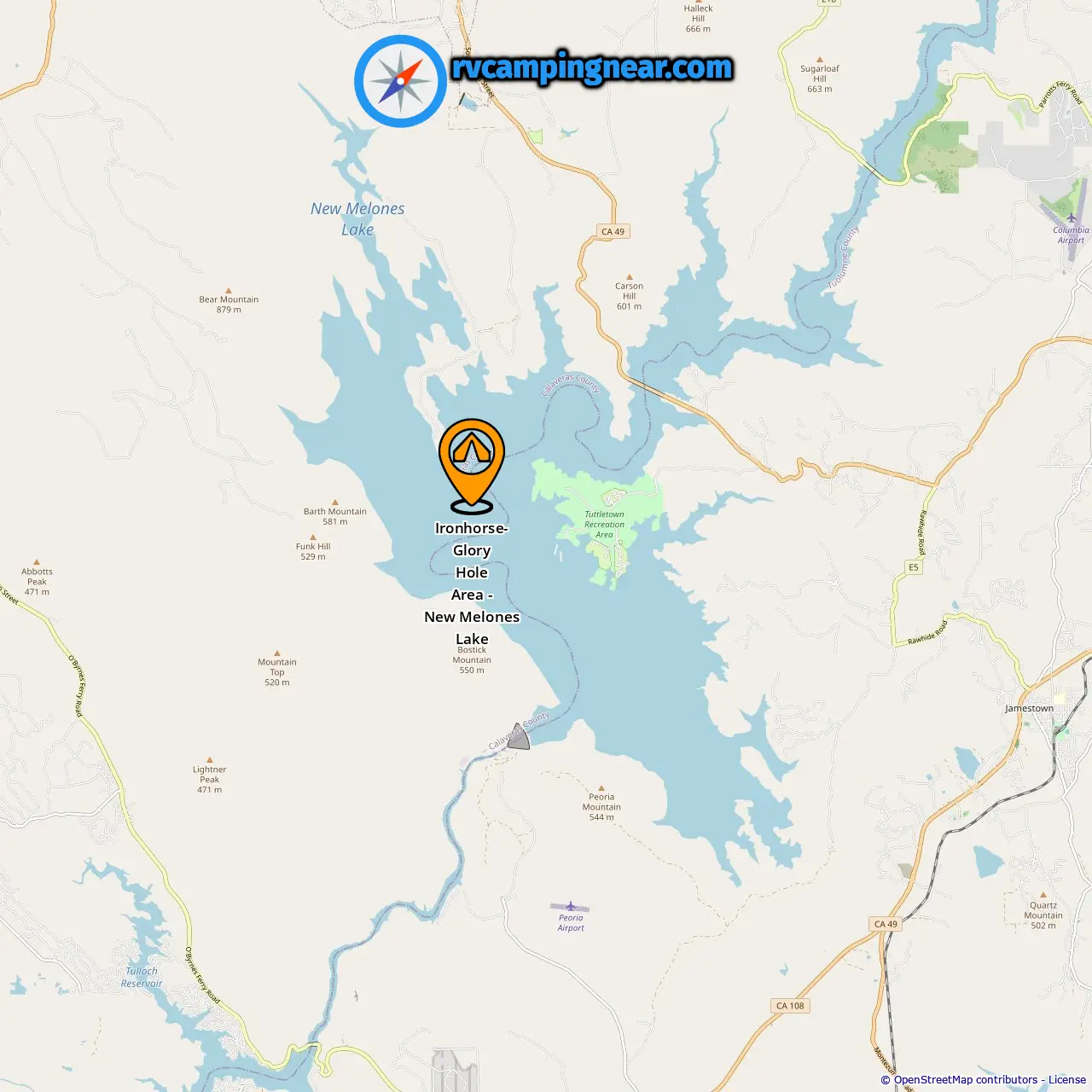 Location of Ironhorse- Glory Hole Area - New Melones Lake