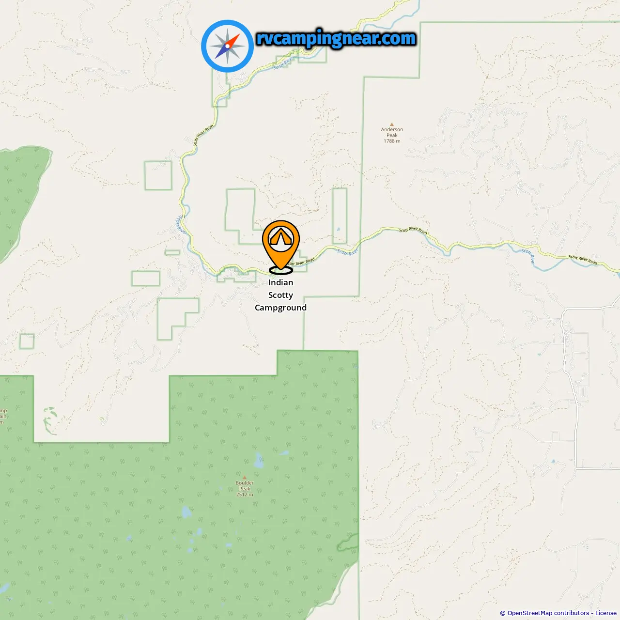 Location of Indian Scotty Campground