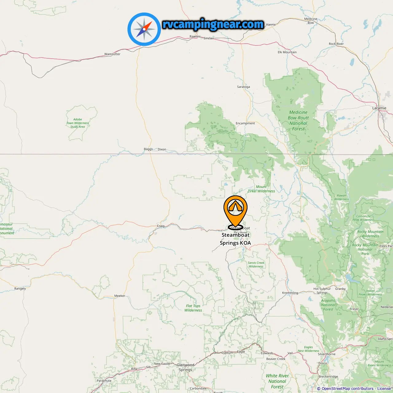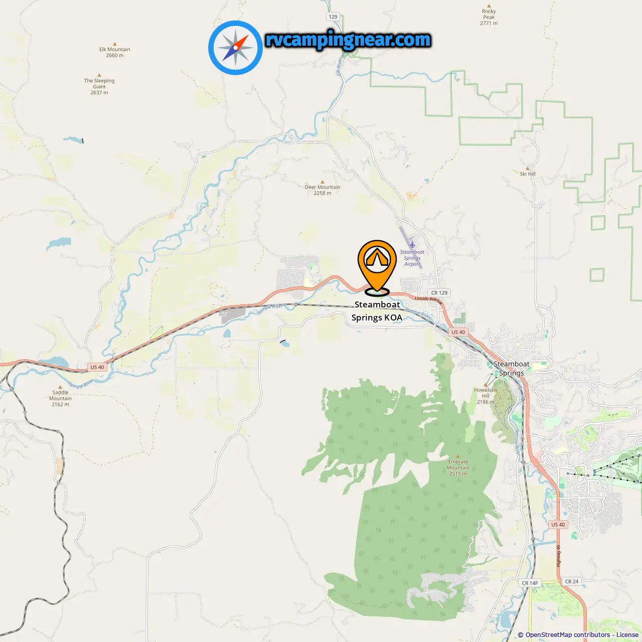 Location of Steamboat Springs KOA