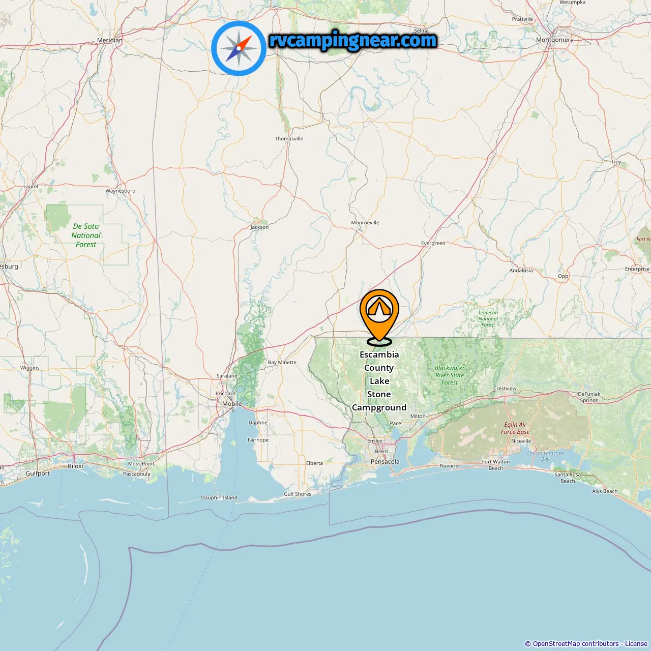 Location of Escambia County Lake Stone Campground