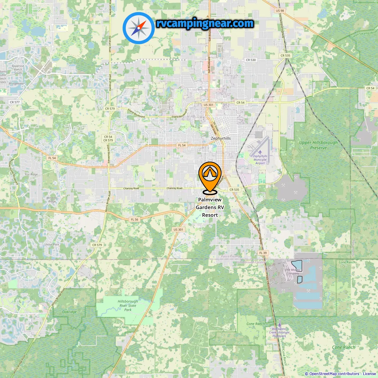 Distance from the campsite to Zephyrhills: 2.13 mi