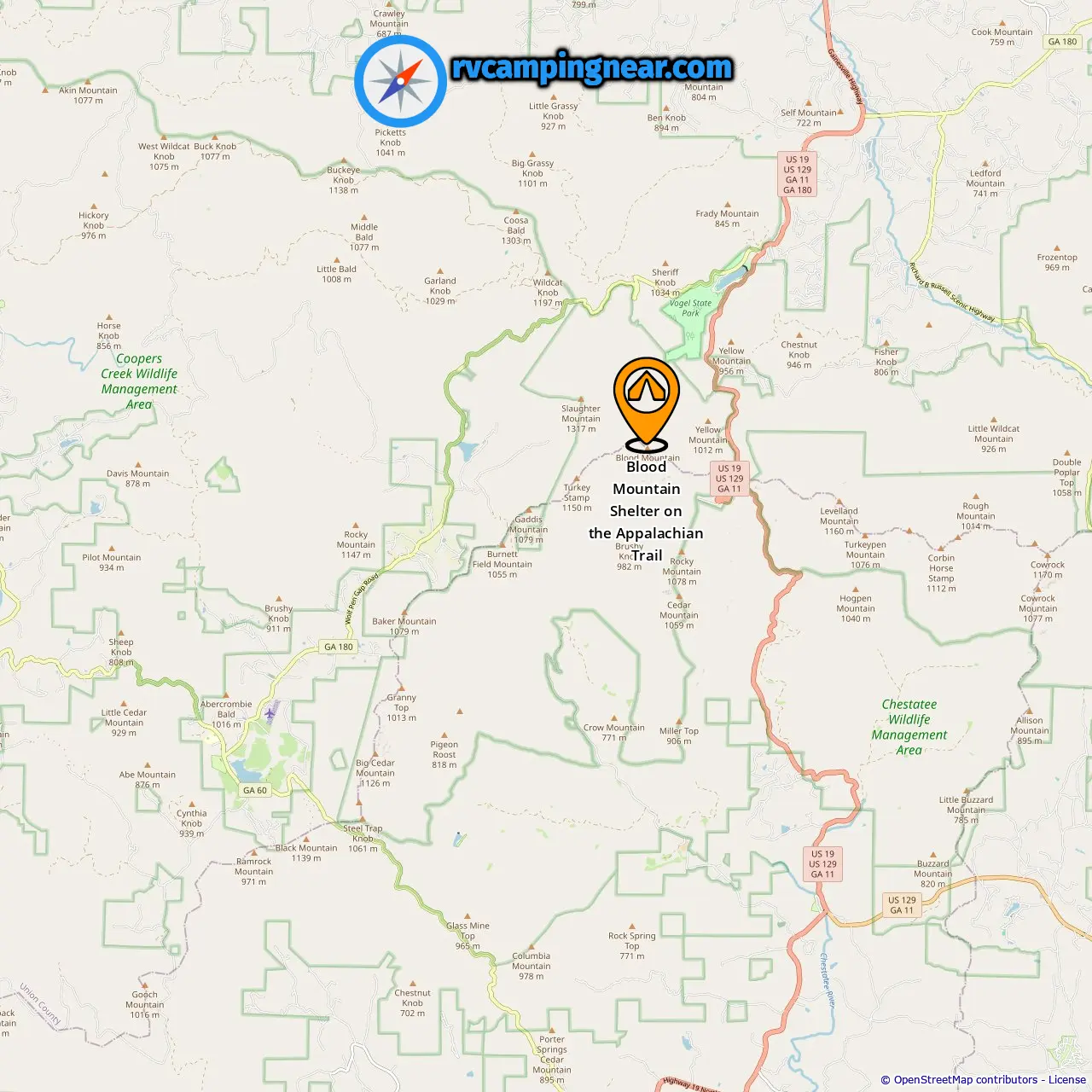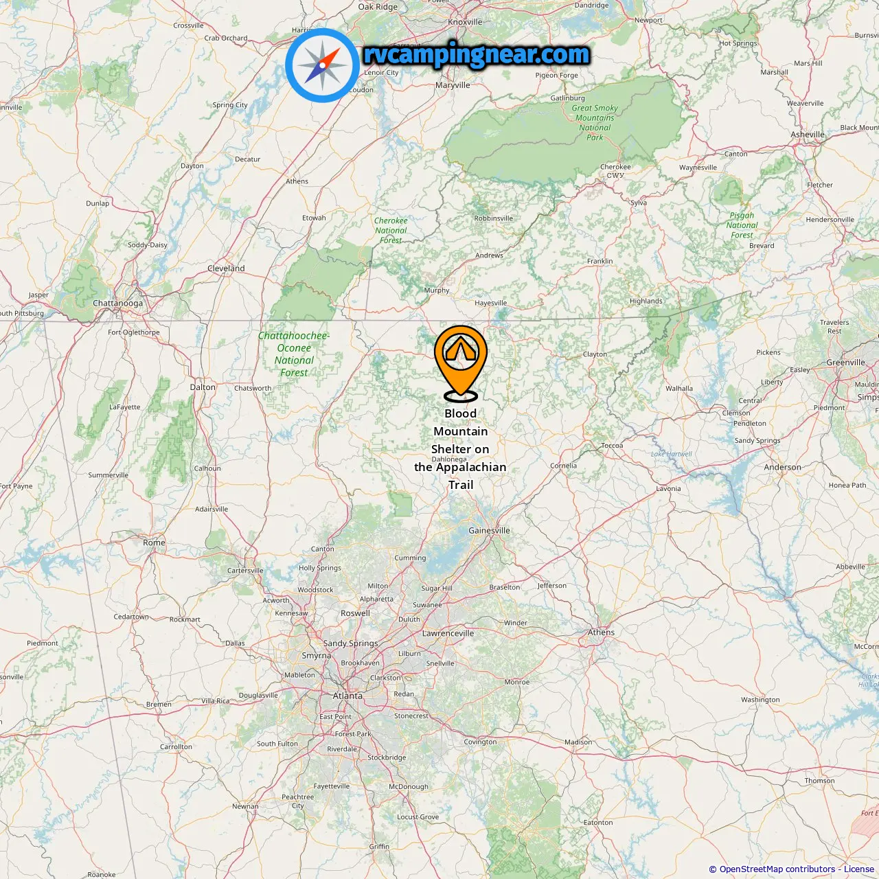 Location of Blood Mountain Shelter on the Appalachian Trail
