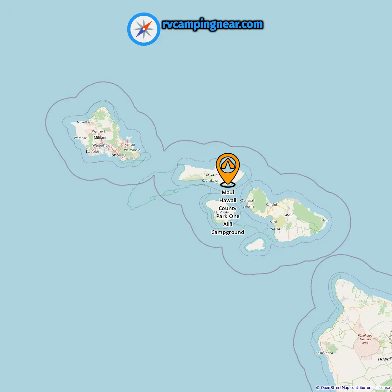 Location of Maui Hawaii County Park One Ali'i Campground