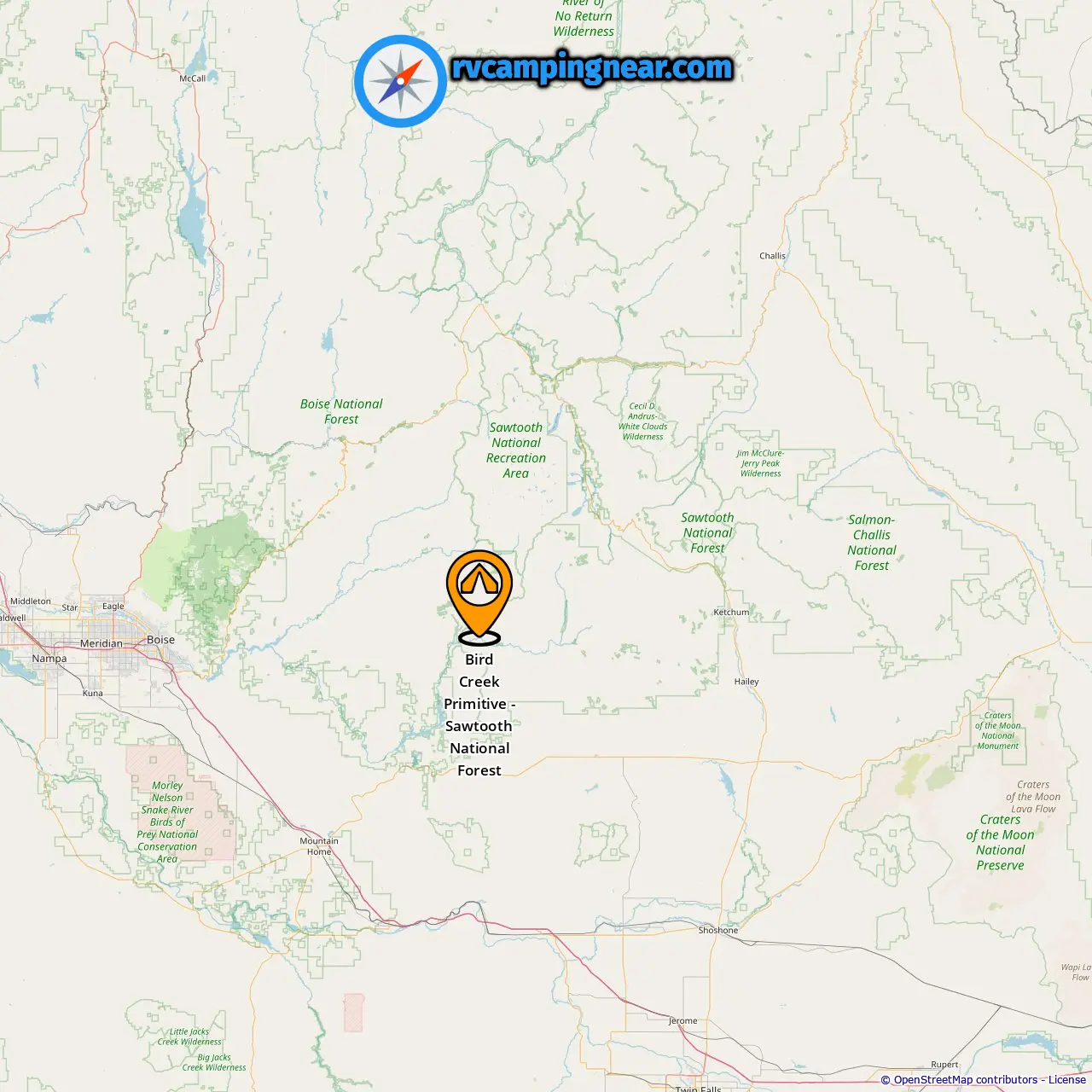 Location of Bird Creek Primitive - Sawtooth National Forest