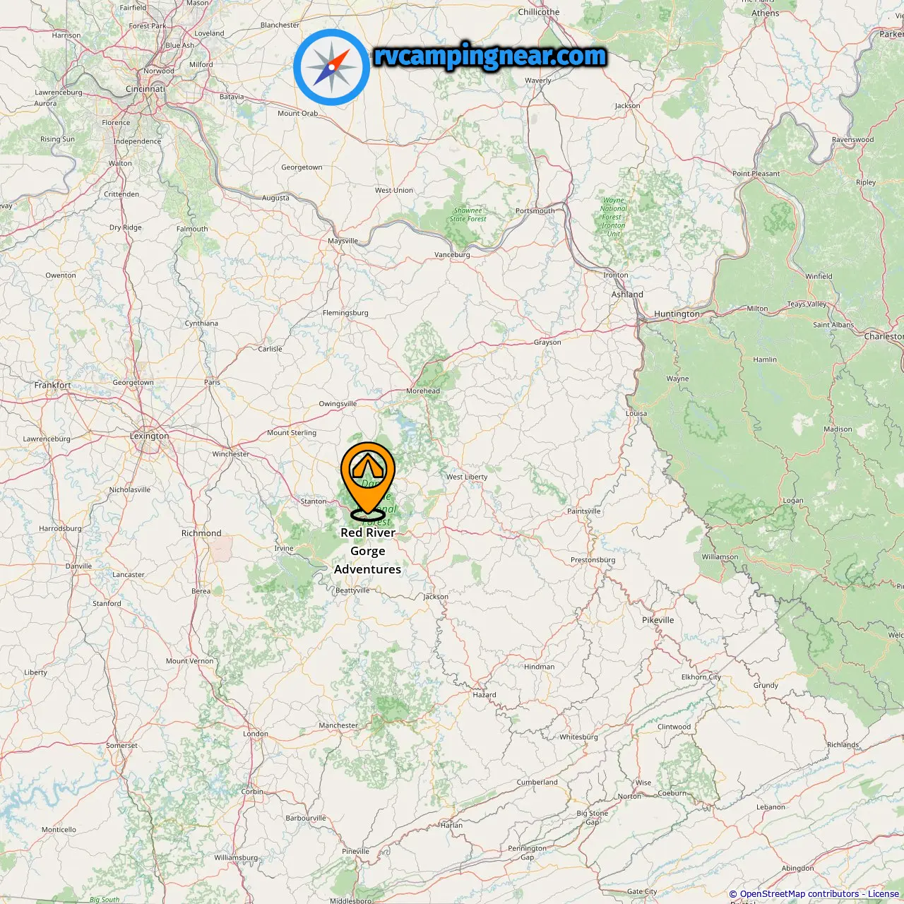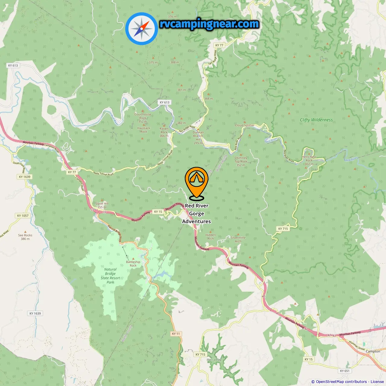 Location of Red River Gorge Adventures
