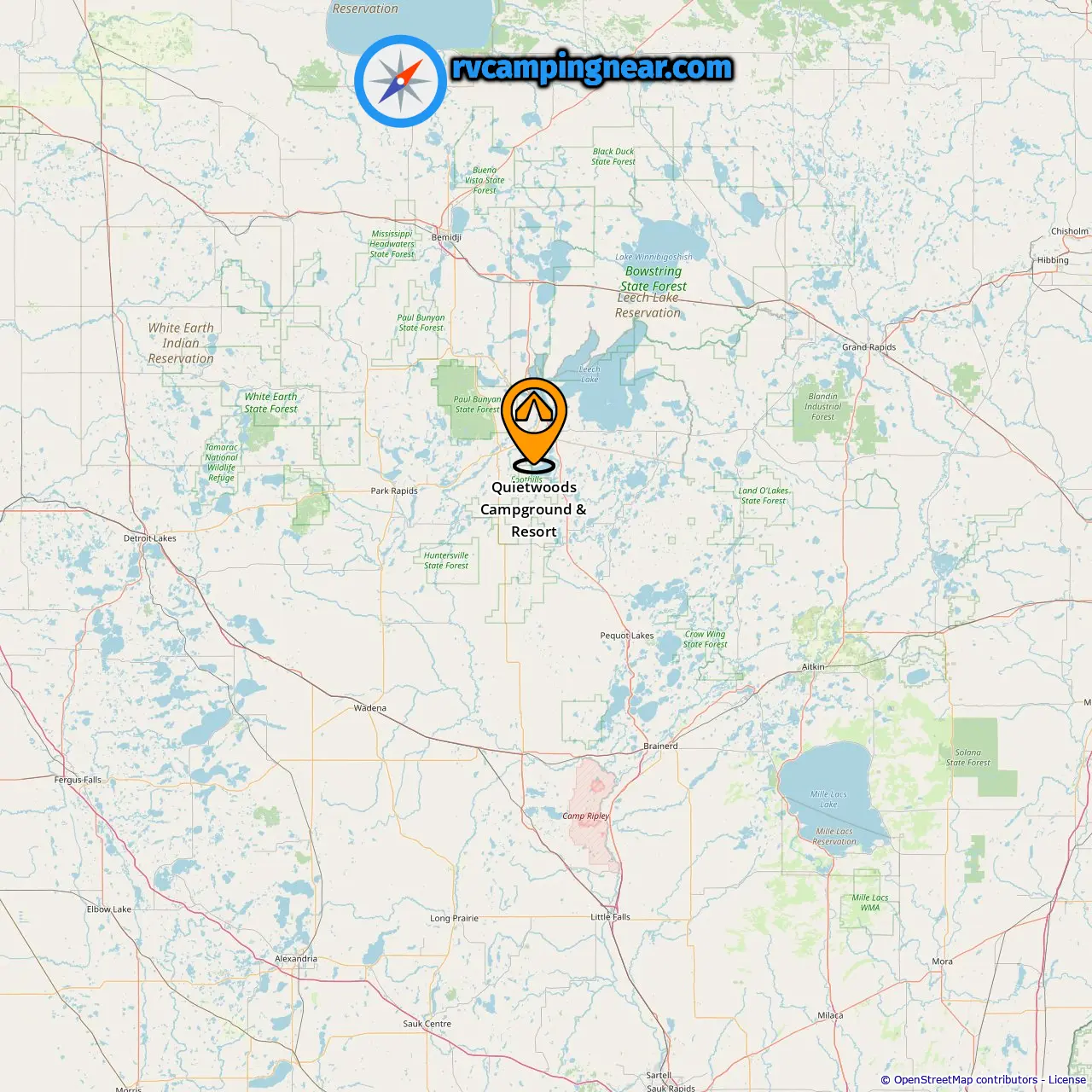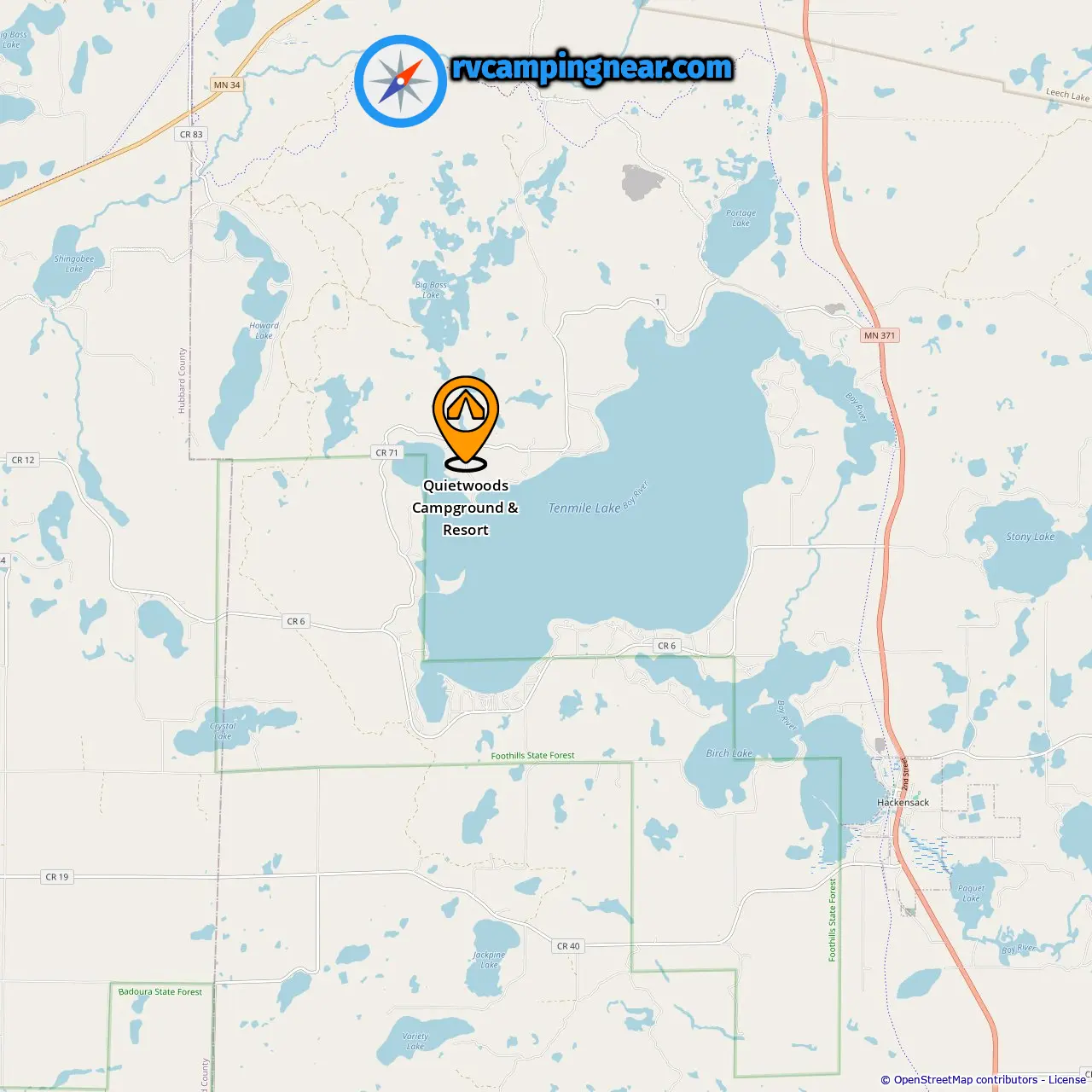 Location of Quietwoods Campground & Resort