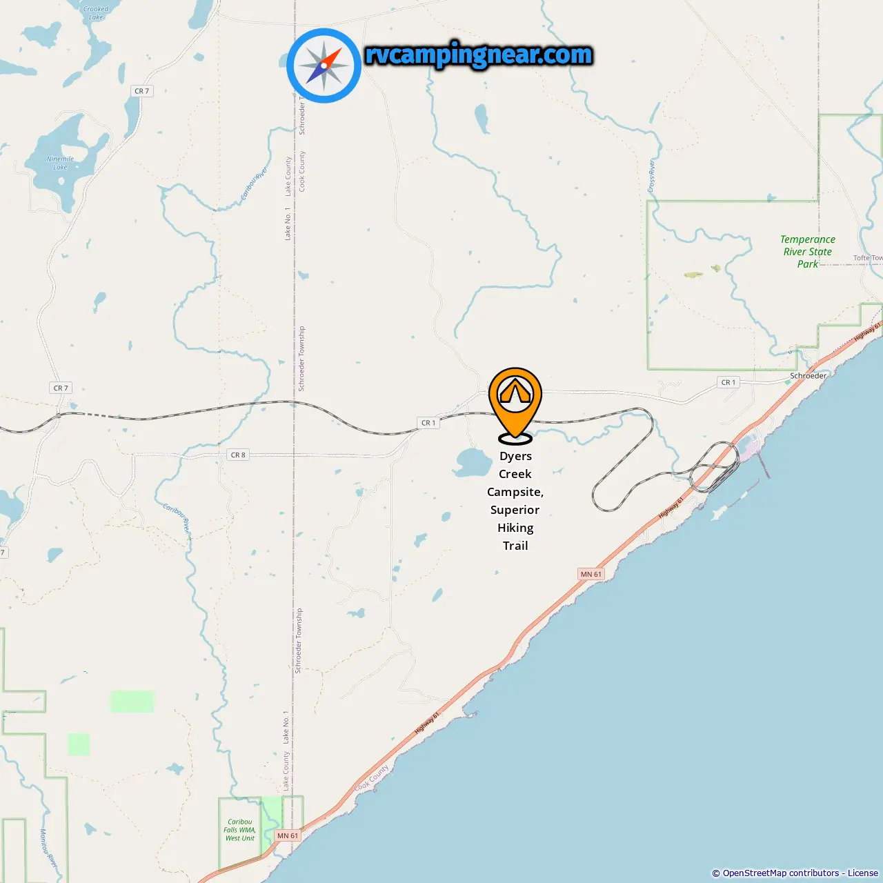 Location of Dyers Creek Campsite, Superior Hiking Trail
