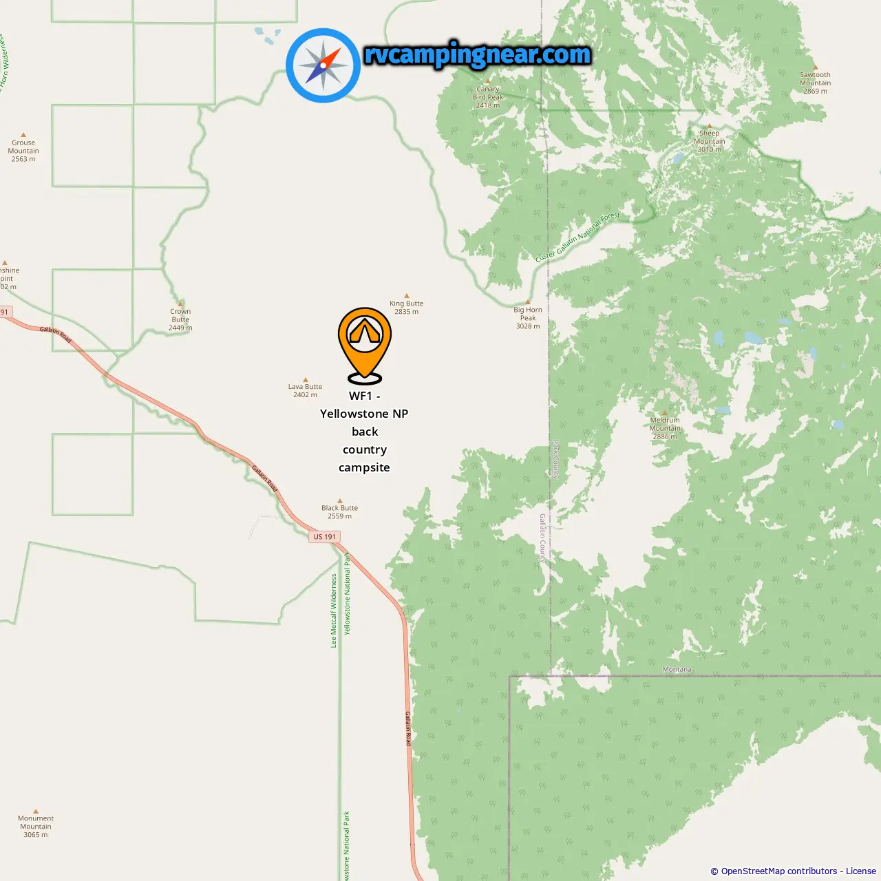 Location of WF1 - Yellowstone NP back country campsite