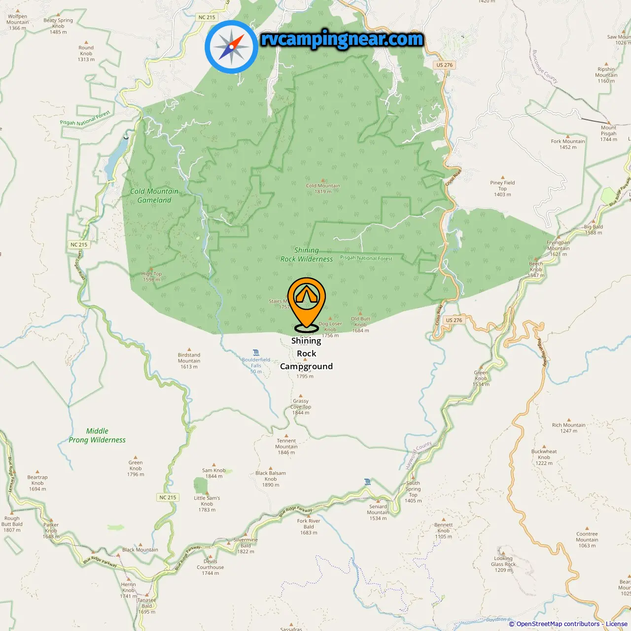 Location of Shining Rock Campground