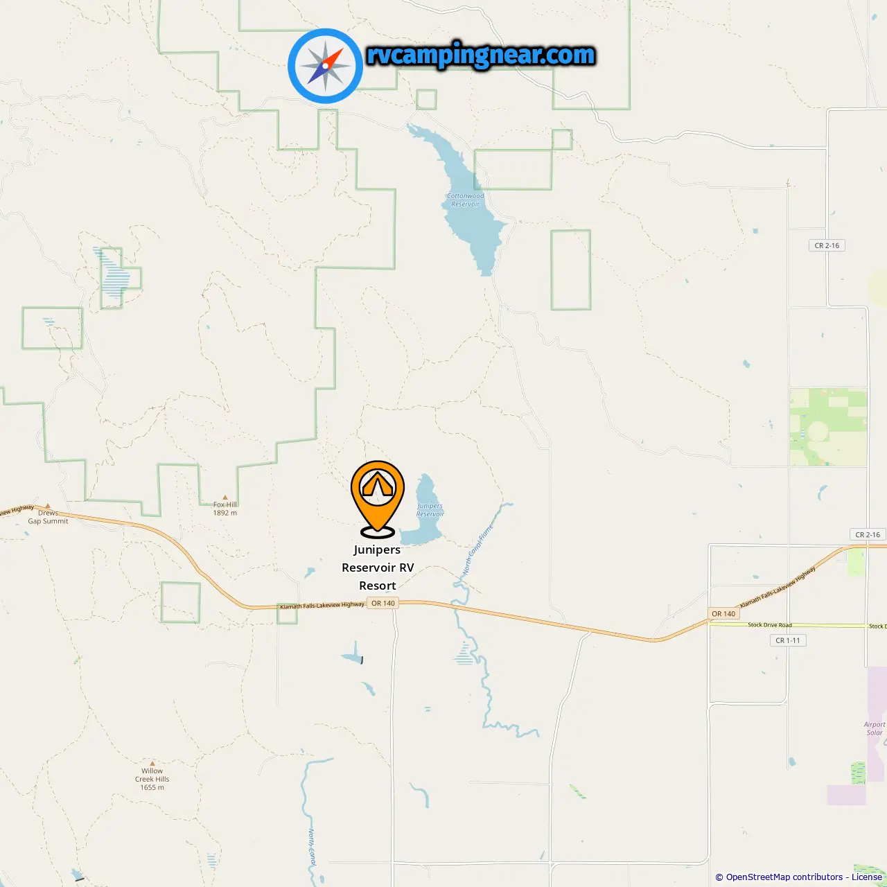 Location of Junipers Reservoir RV Resort