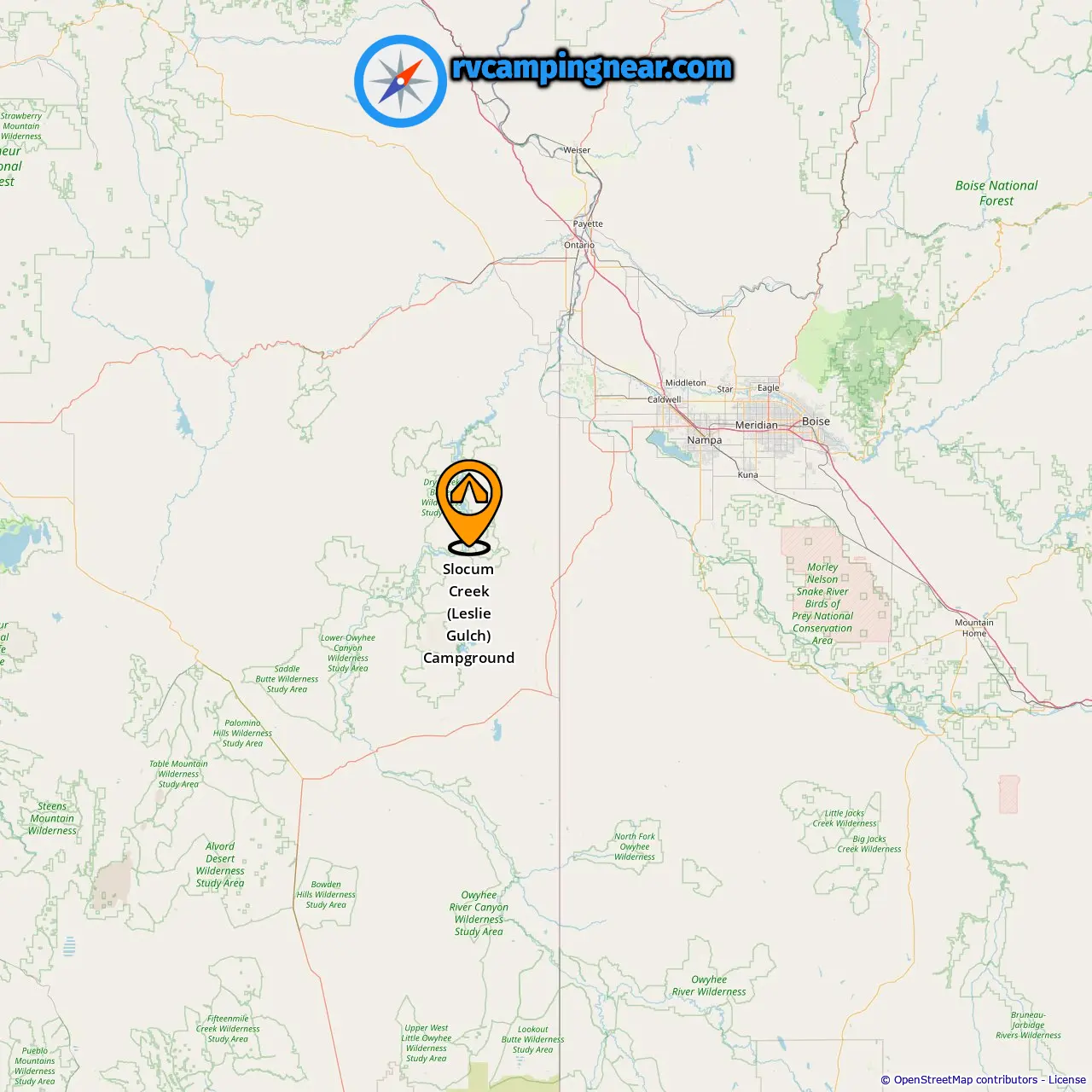 Location of Slocum Creek (Leslie Gulch) Campground