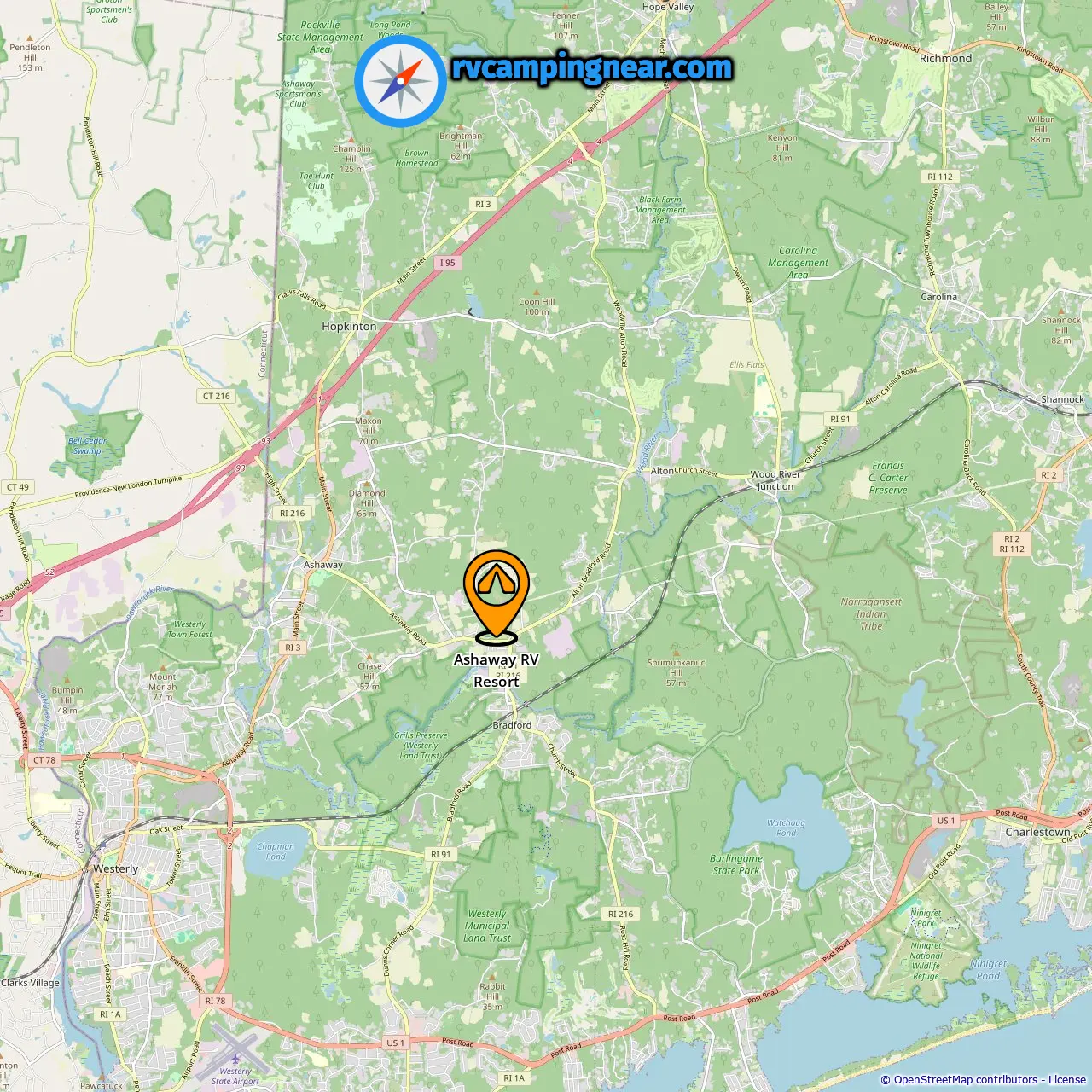Location of Ashaway RV Resort