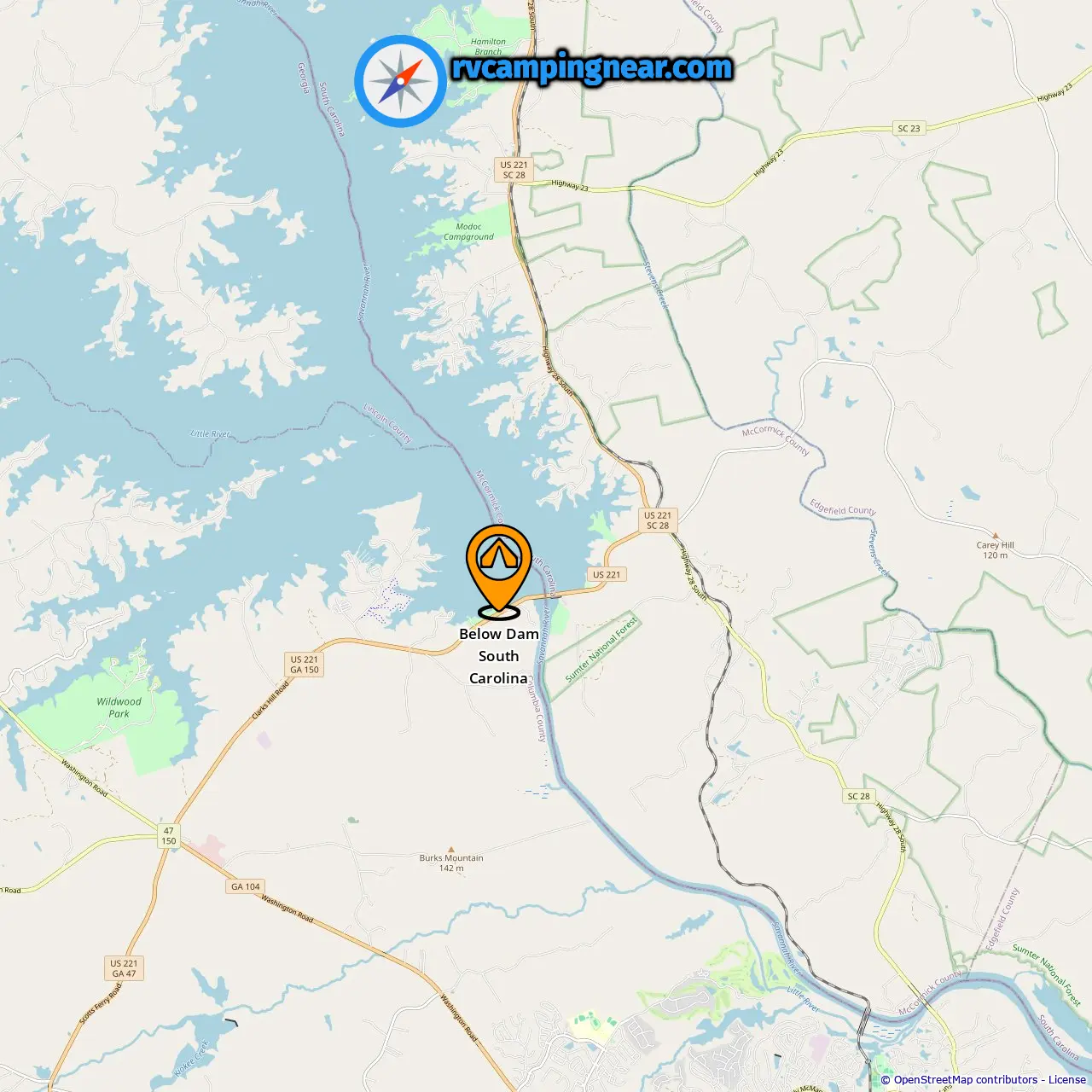 Location of Below Dam South Carolina
