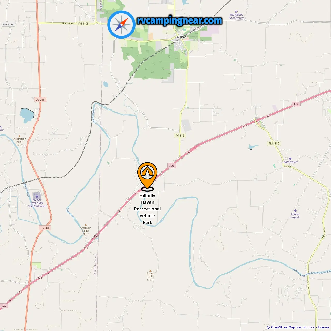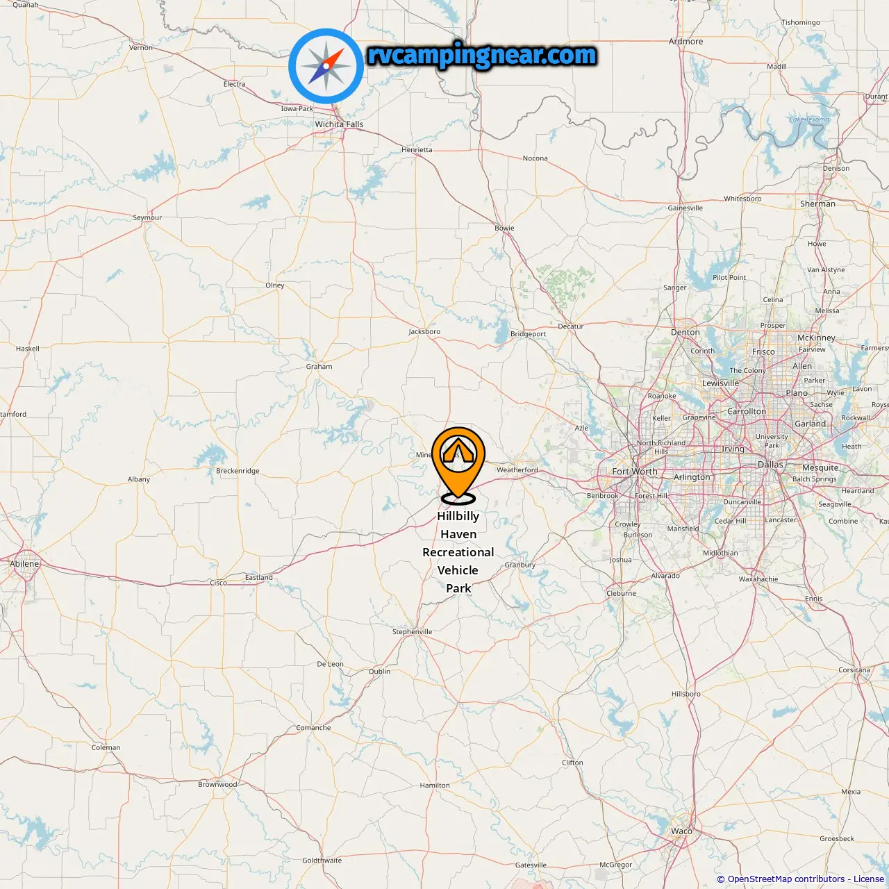 Location of Hillbilly Haven Recreational Vehicle Park