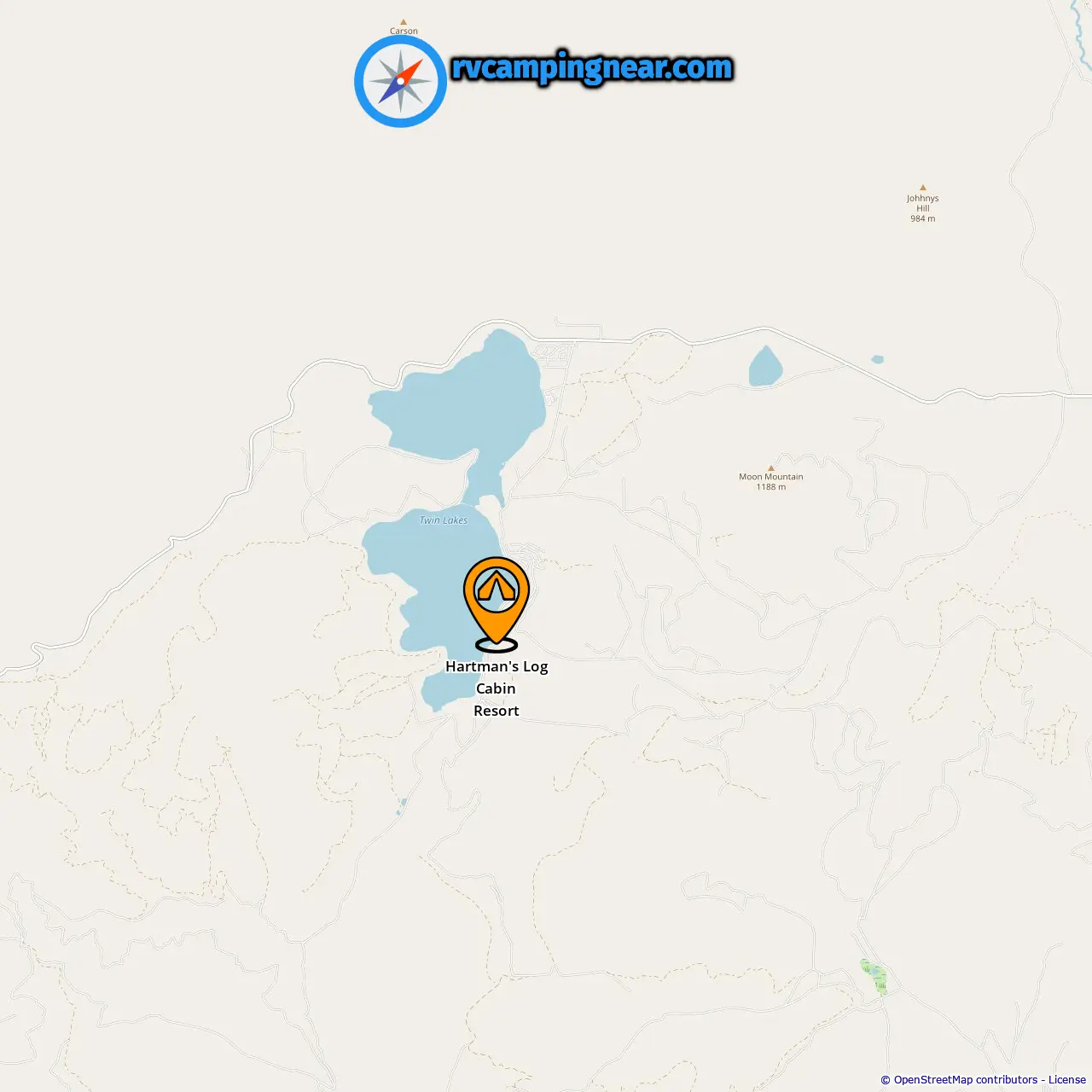 Location of Hartman's Log Cabin Resort