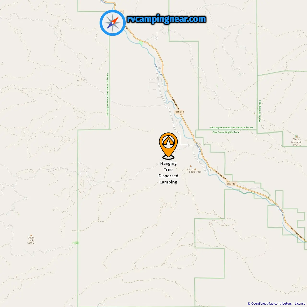 Location of Hanging Tree Dispersed Camping