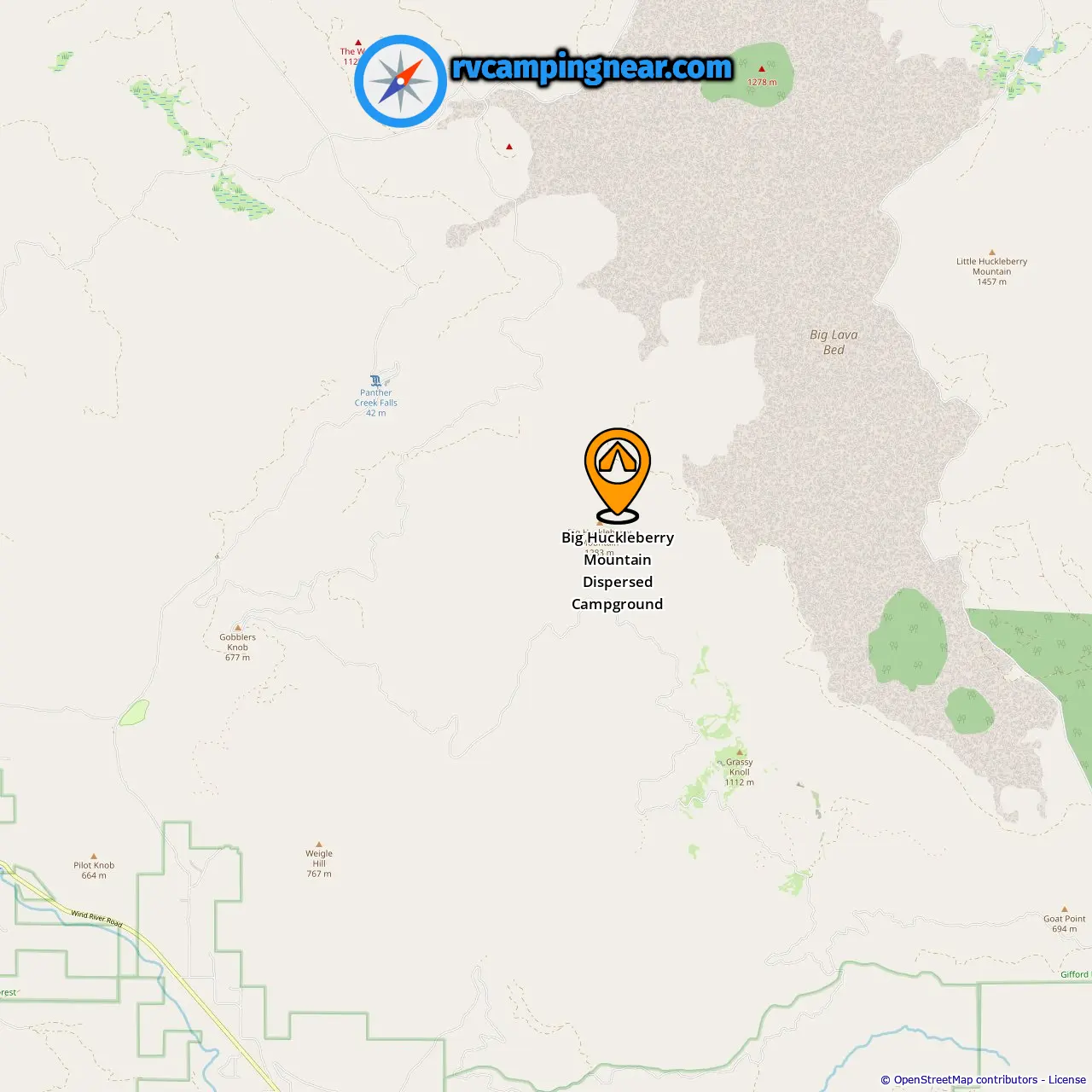 Location of Big Huckleberry Mountain Dispersed Campground