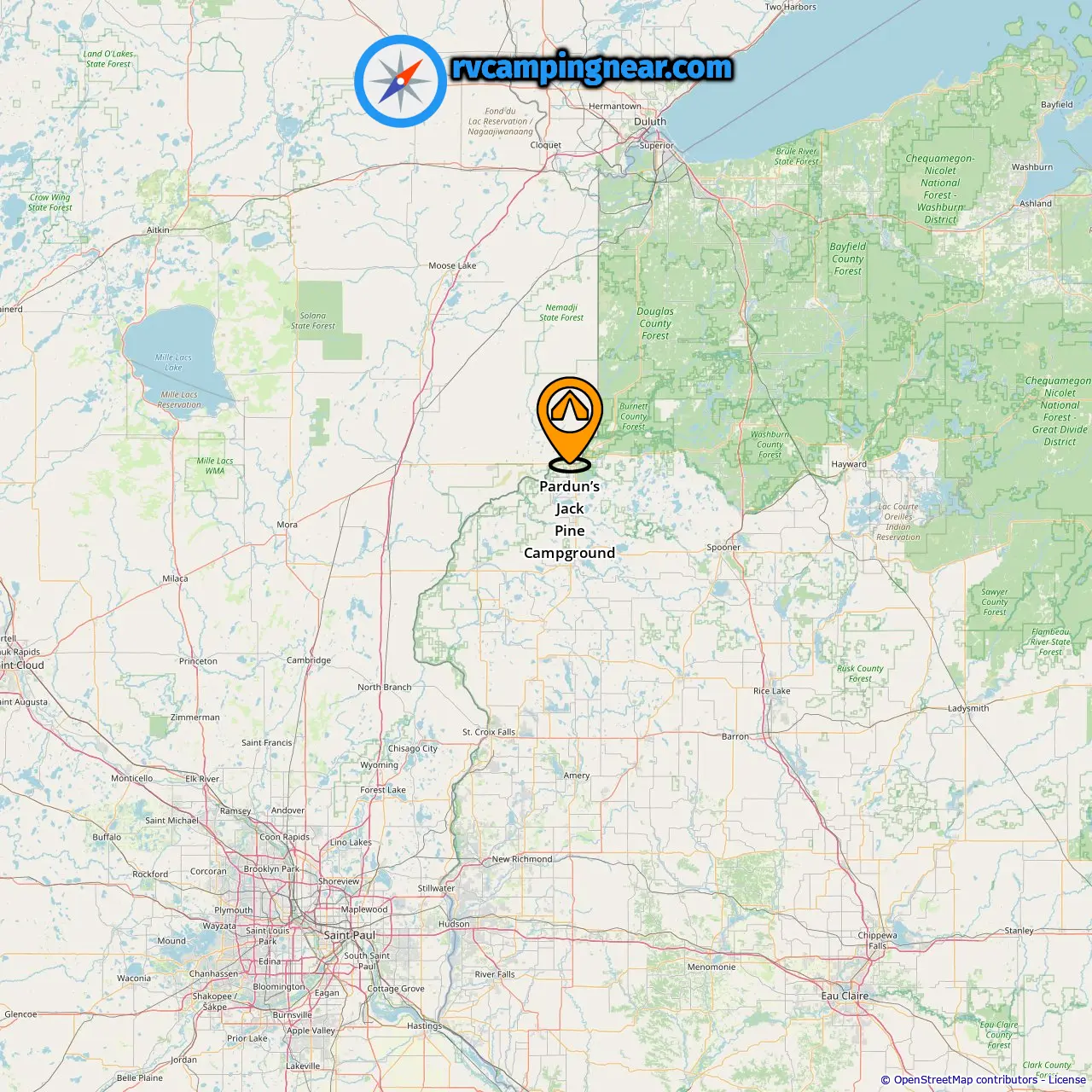 Location of Pardun’s Jack Pine Campground