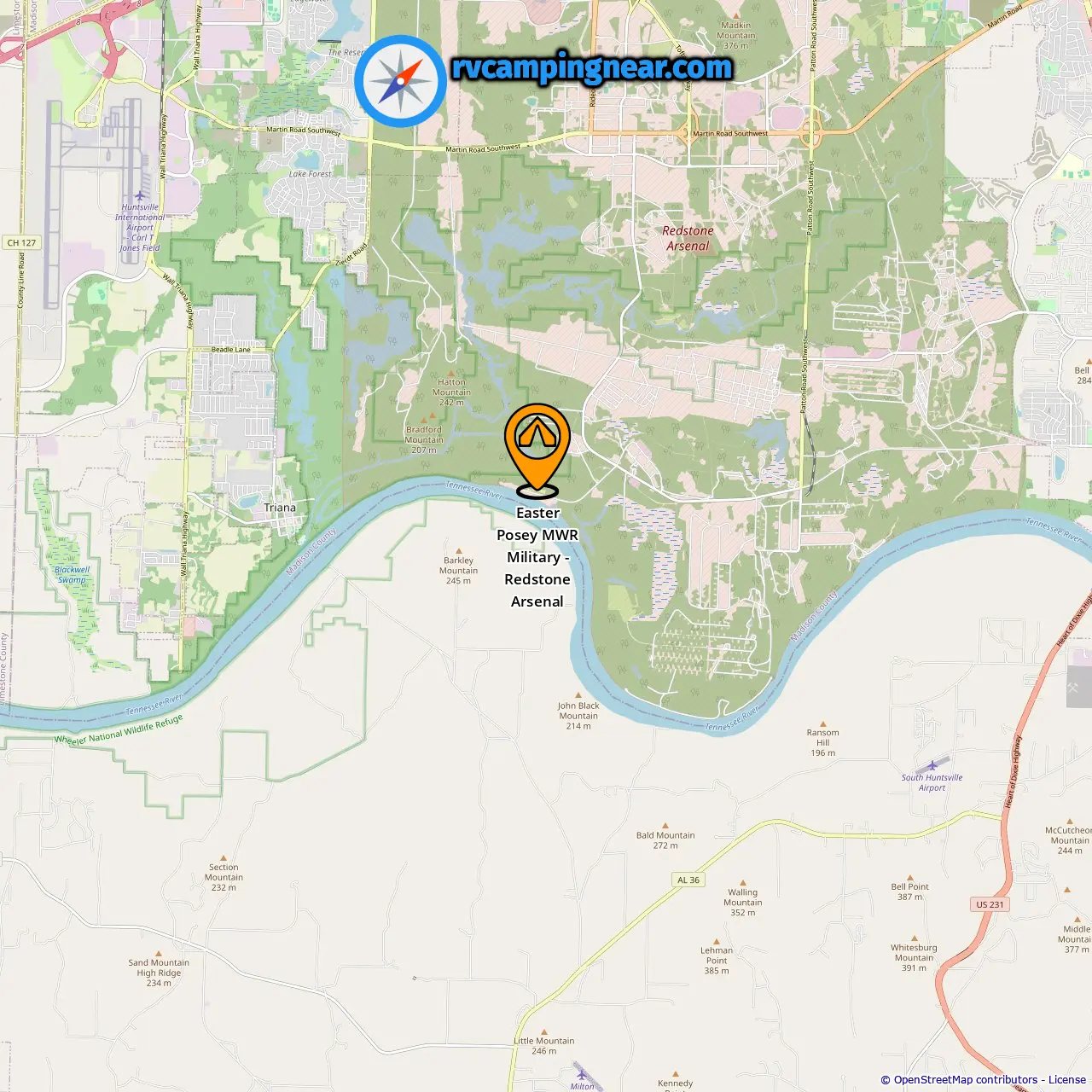 Location of Easter Posey MWR Military - Redstone Arsenal