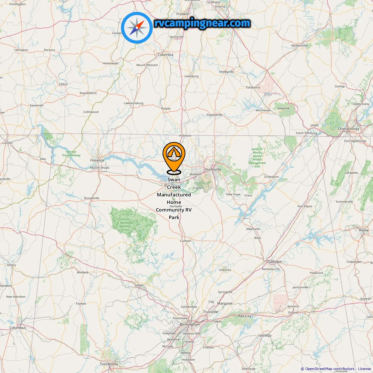 Campgrounds in Huntsville (29.68 mi from Tanner)