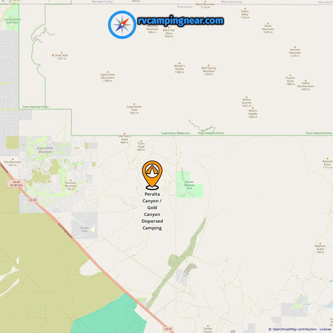 Location of Peralta Canyon / Gold Canyon Dispersed Camping