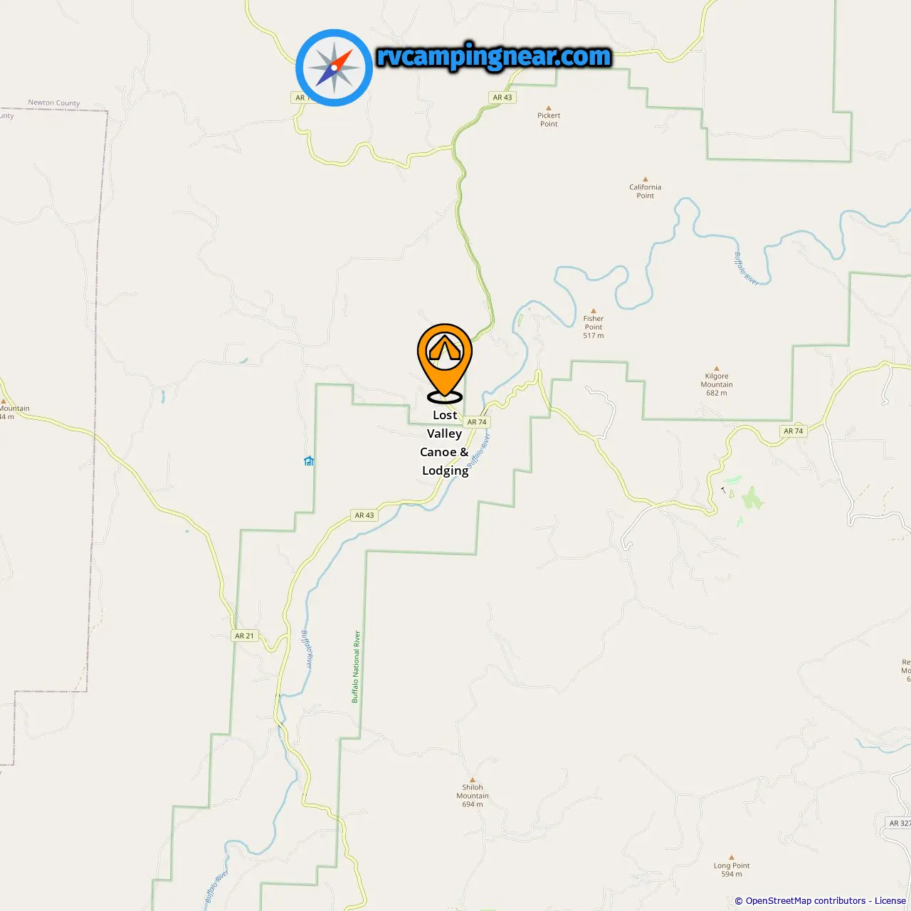 Location of Lost Valley Canoe & Lodging