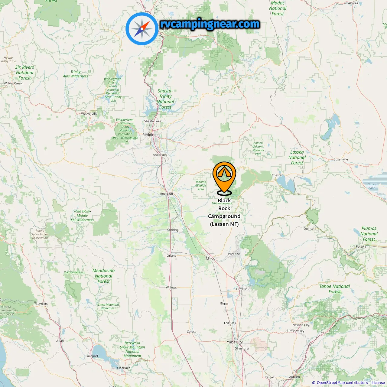 Location of Black Rock Campground (Lassen NF)