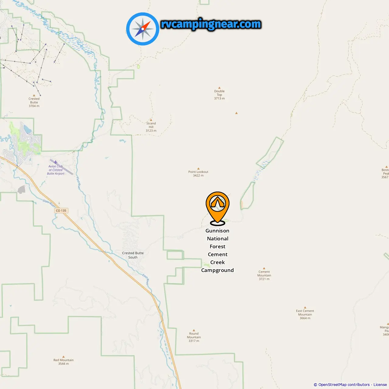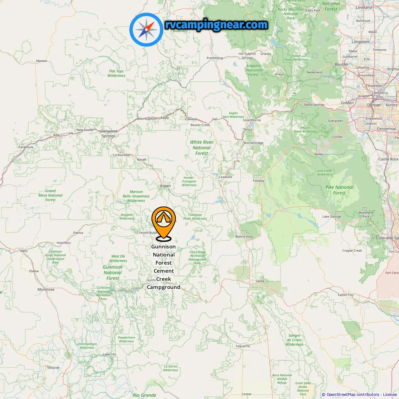 Location of Gunnison National Forest Cement Creek Campground