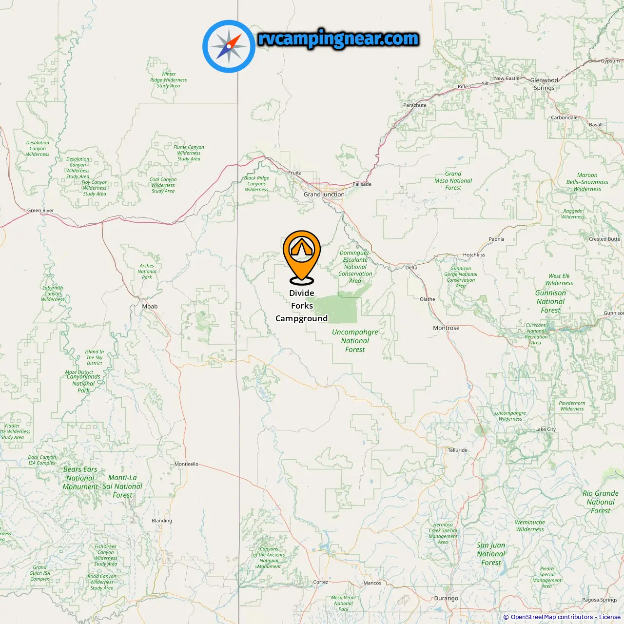 Location of Divide Forks Campground