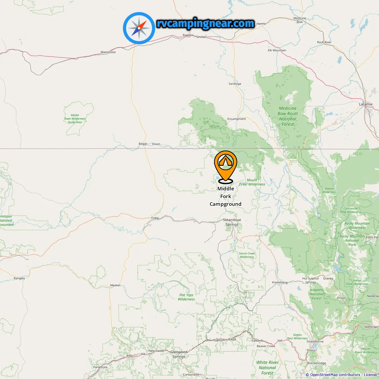 Campgrounds in Steamboat Springs (19.39 mi from Glen Eden)