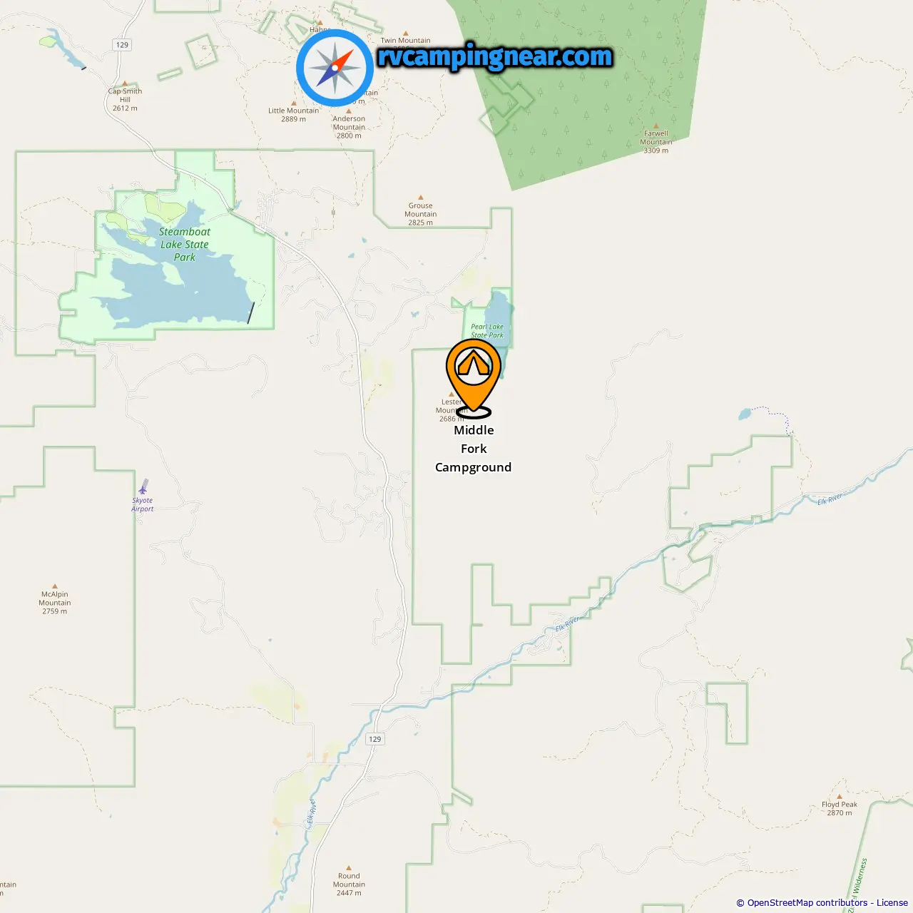 Location of Middle Fork Campground