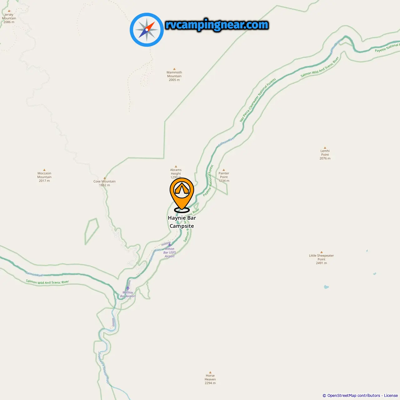 Location of Haynie Bar Campsite