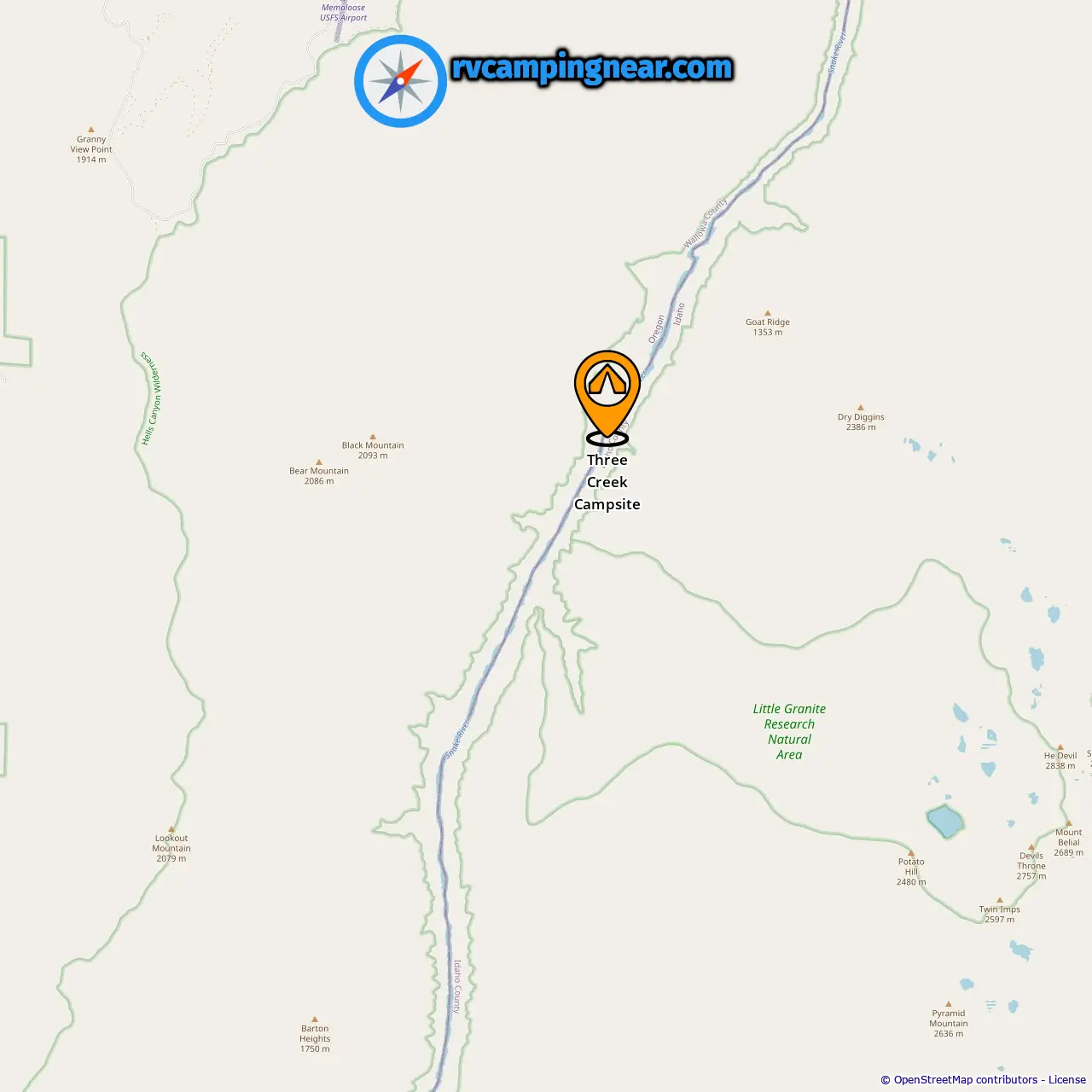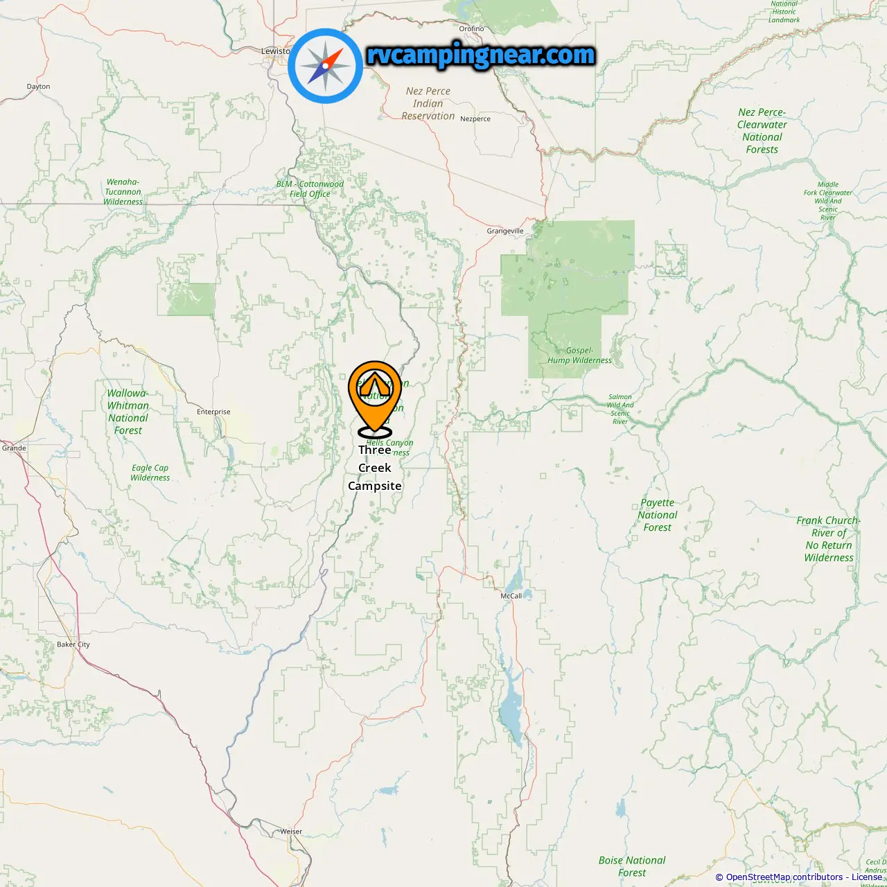 Location of Three Creek Campsite