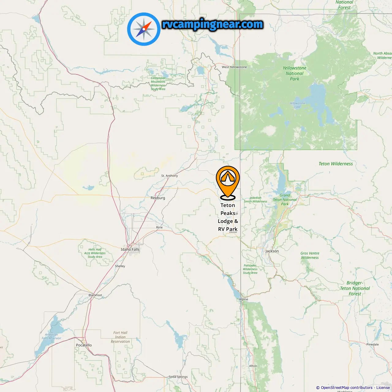 Location of Teton Peaks Lodge & RV Park