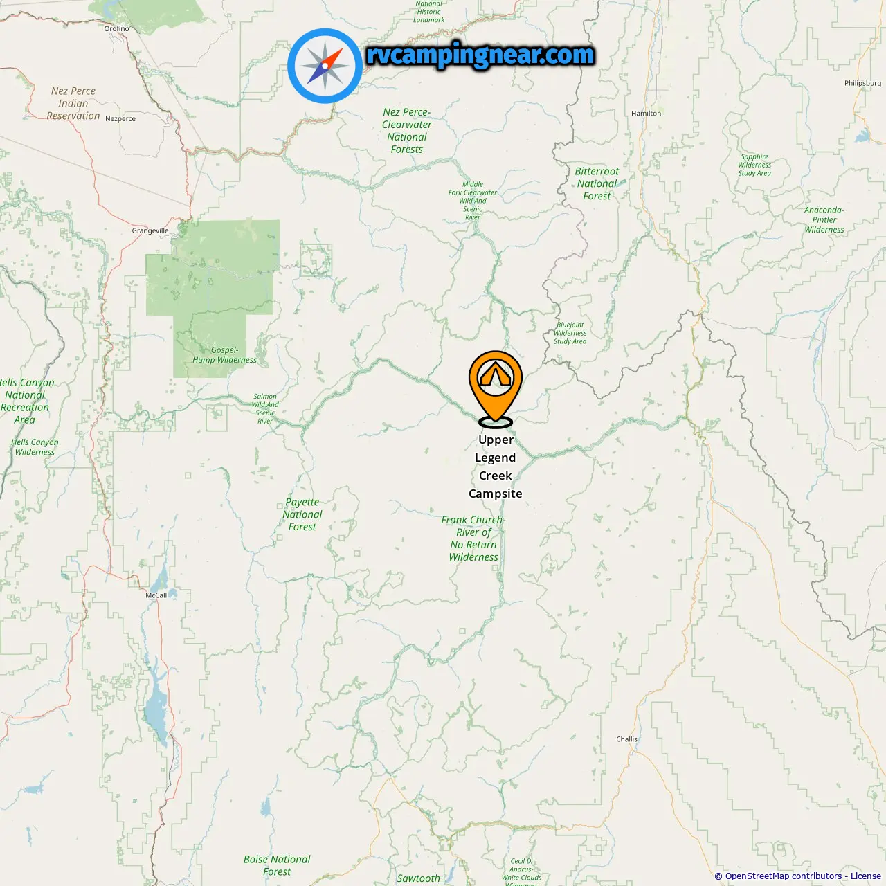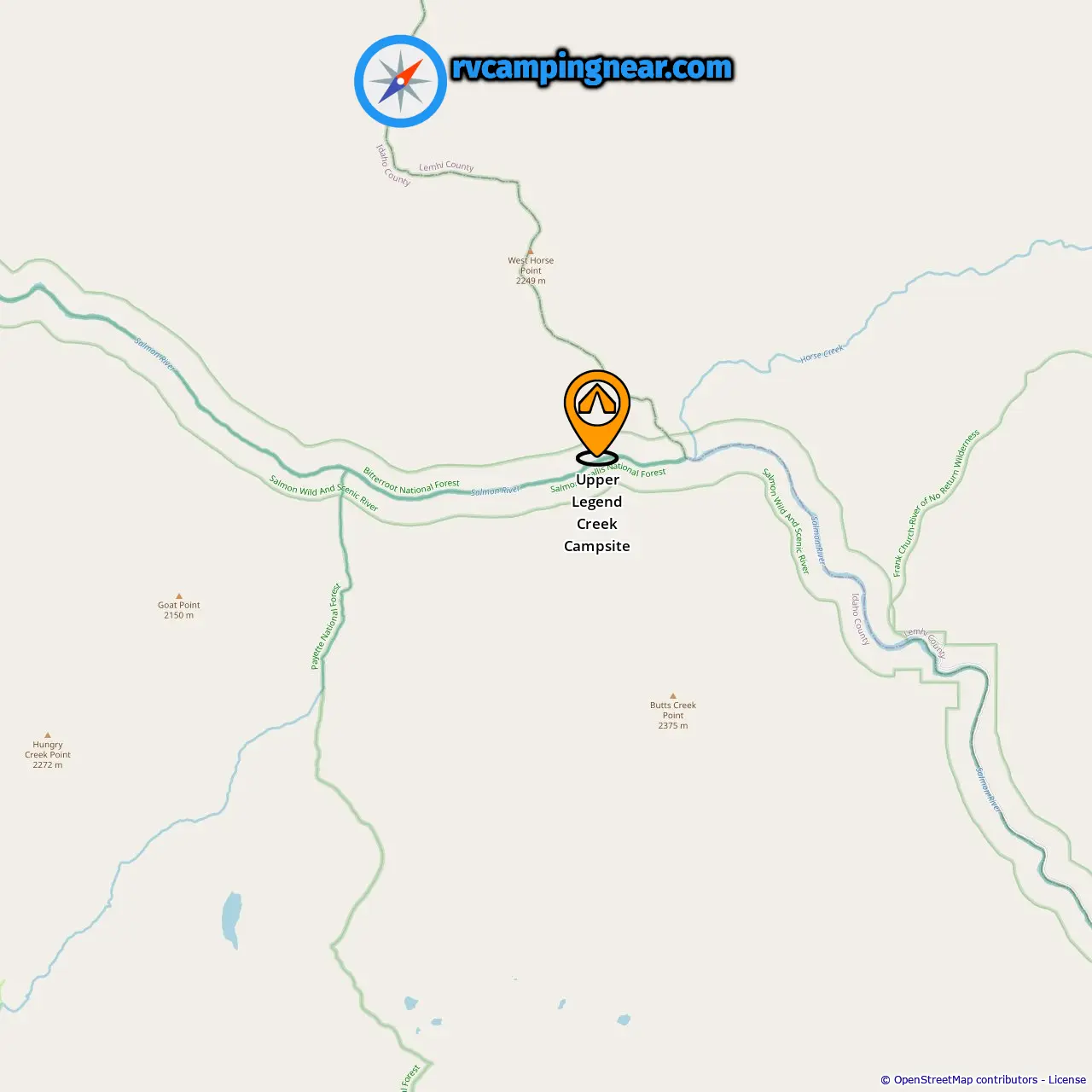 Location of Upper Legend Creek Campsite