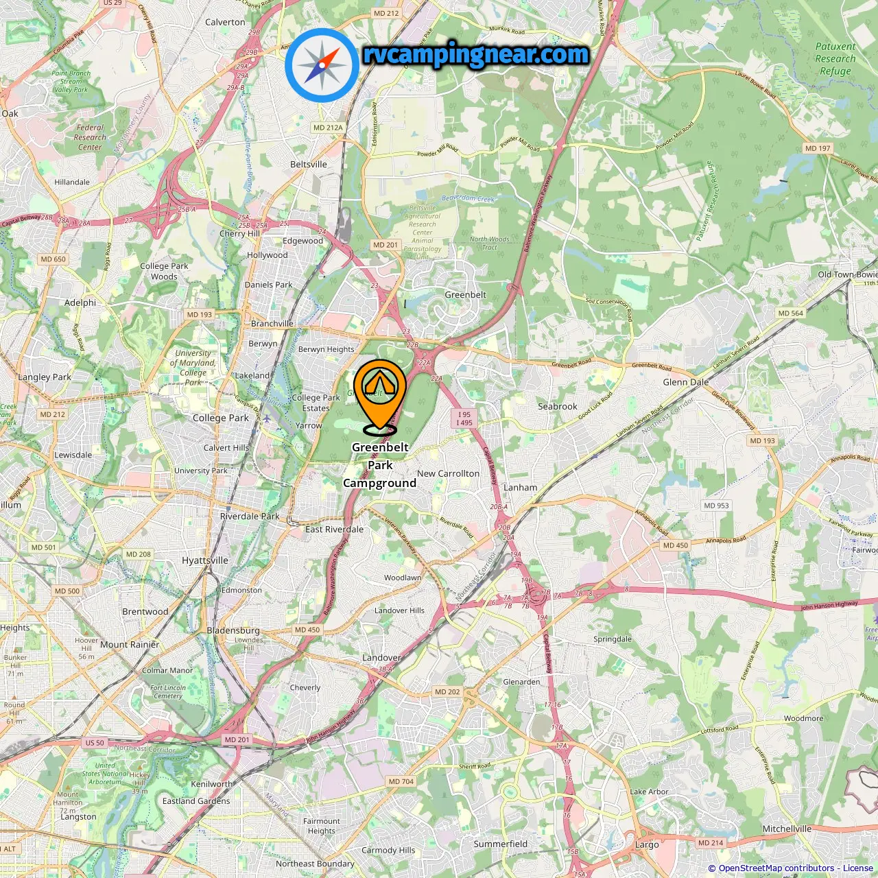 Location of Greenbelt Park Campground