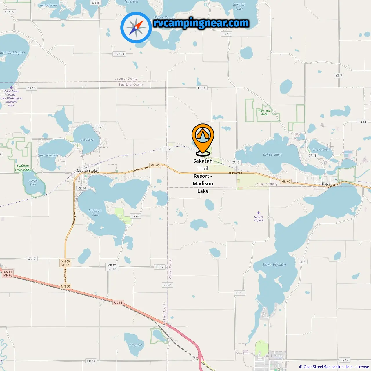 Location of Sakatah Trail Resort - Madison Lake