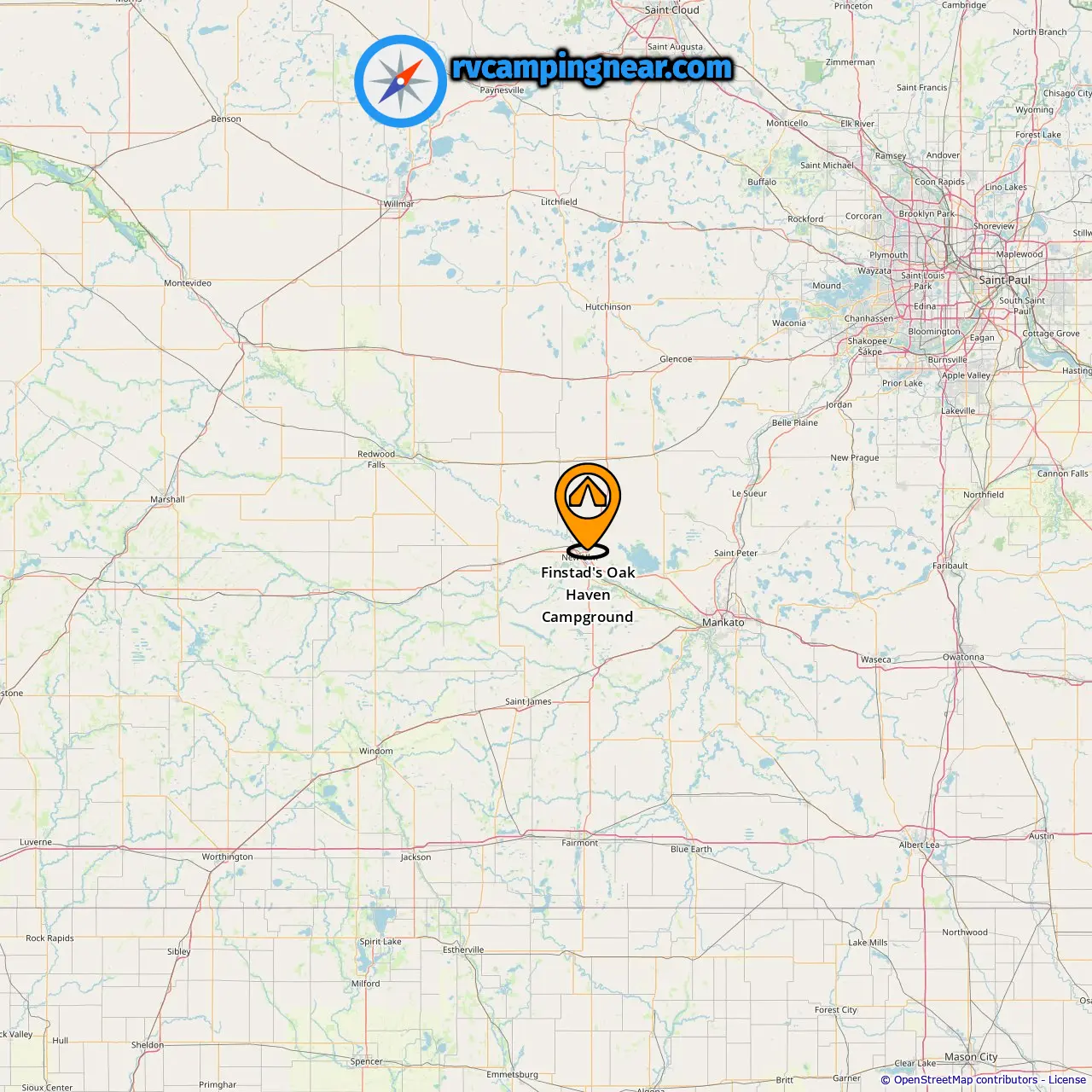 Location of Finstad's Oak Haven Campground