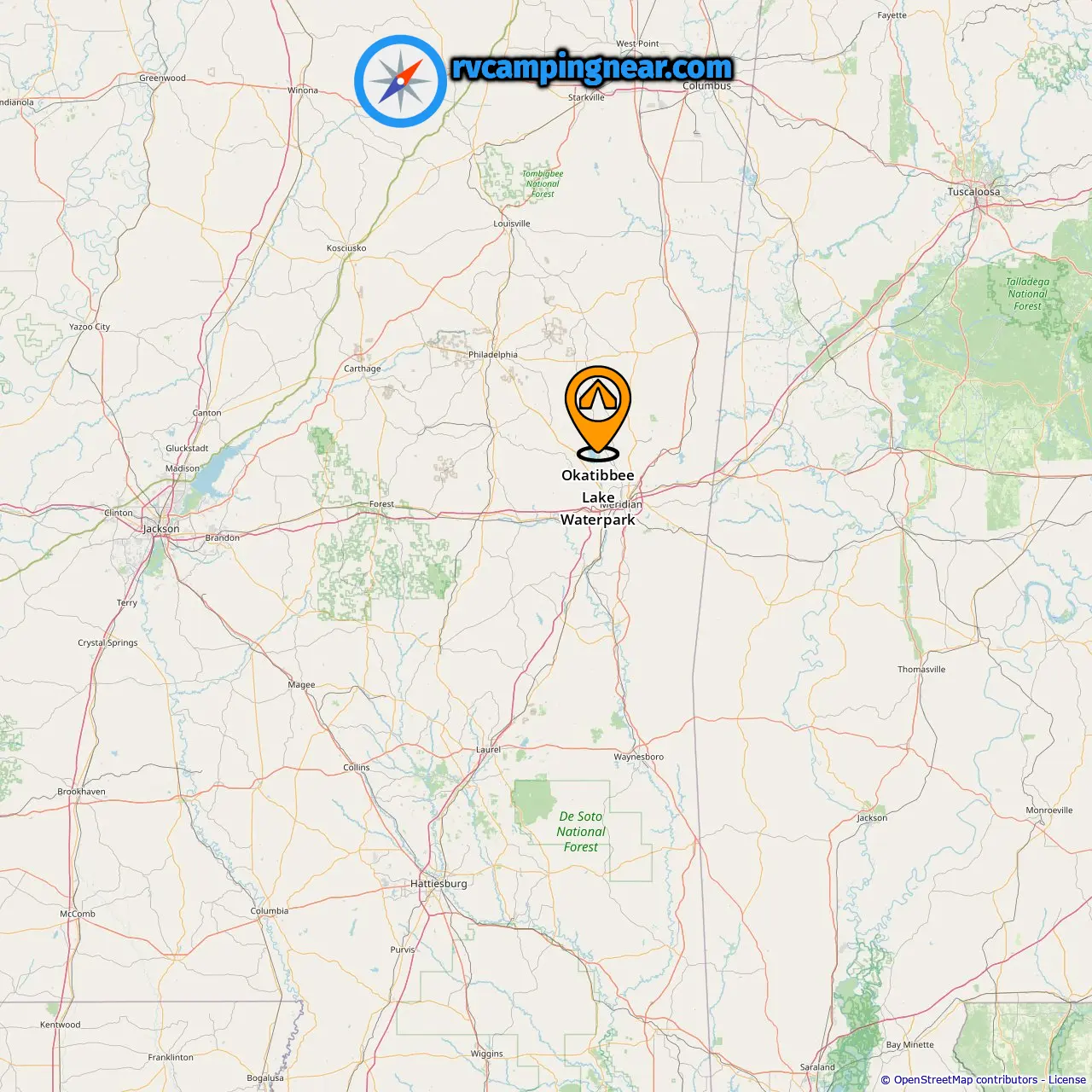 Location of Okatibbee Lake Waterpark