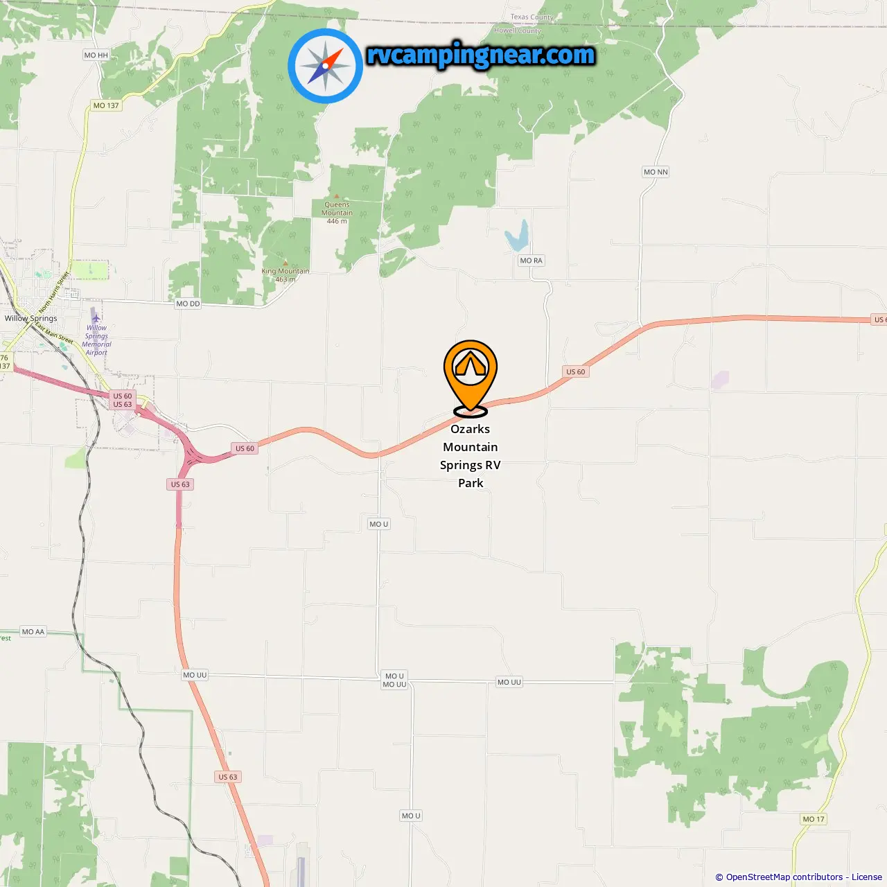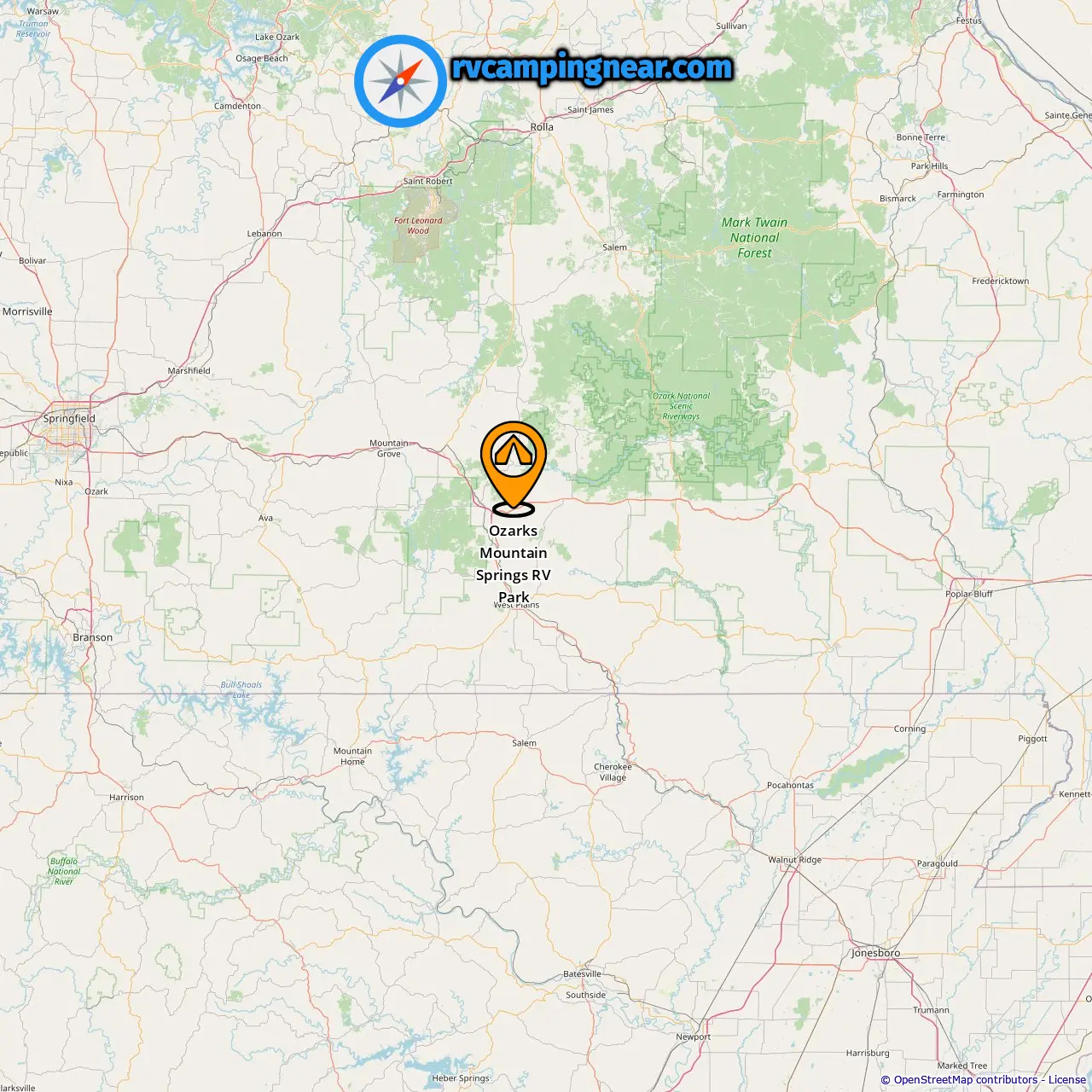 Location of Ozarks Mountain Springs RV Park