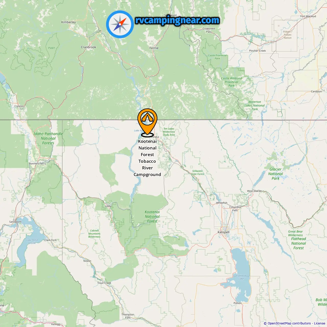 Location of Kootenai National Forest Tobacco River Campground