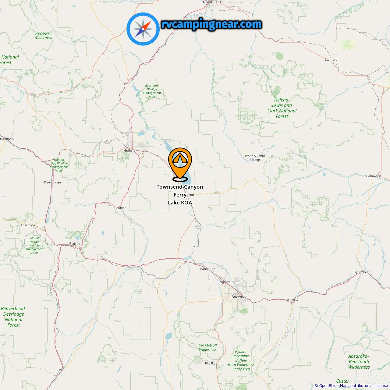 Location of Townsend-Canyon Ferry Lake KOA