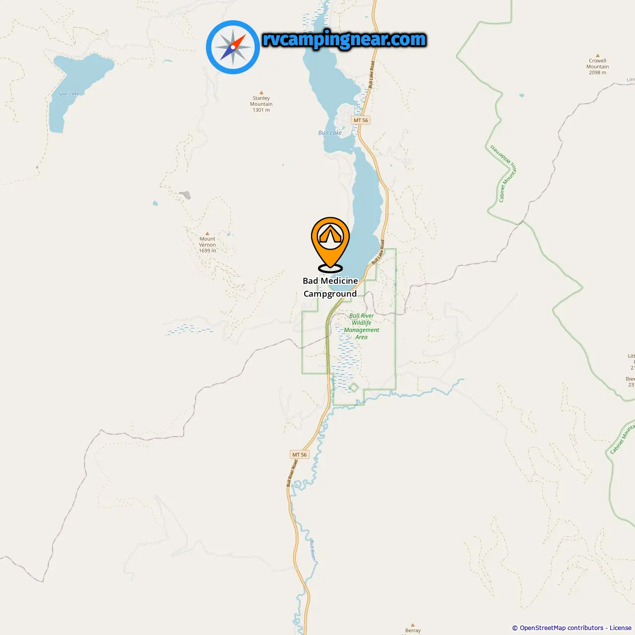 Location of Bad Medicine Campground